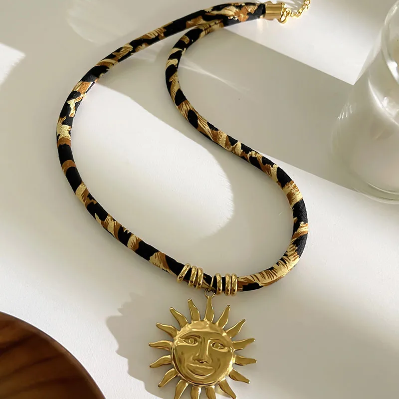 Stainless Steel Leopard Polyester Flower Heart Sun Drop Collar Necklace Personality Popular Gold Color Necklaces Jewelry Gift