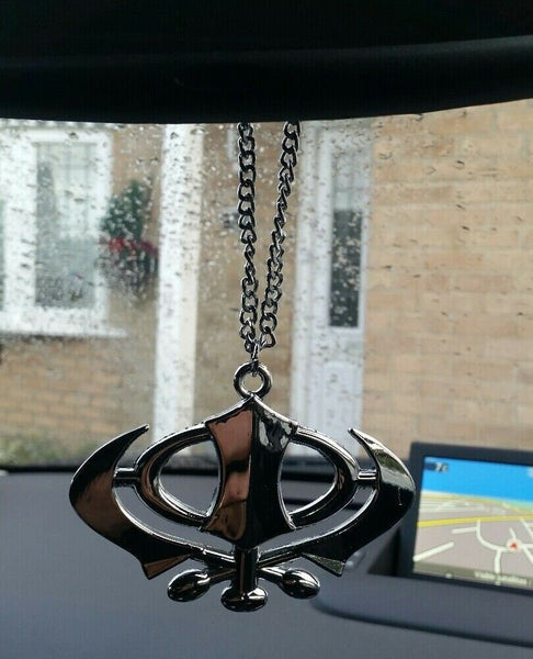 Stainless Steel Punjabi Sikh Wide Khanda Stunning Pendant for Car Rear Mirror
