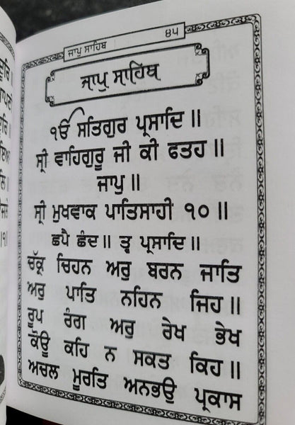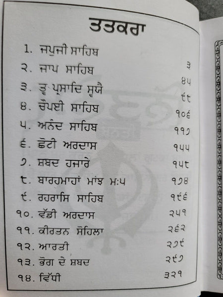 This Gutka Sahib has Bold Gurmukhi Font - good for elderly. It contains several additional Banis. Please check contents photo. It also contains detailed procdeure/methord of doing Nitnem at the begining of Gutka Shaib. We have seen this first Gutka Sahib that contains this exclusive Nitnem Procedure (Vidhi)