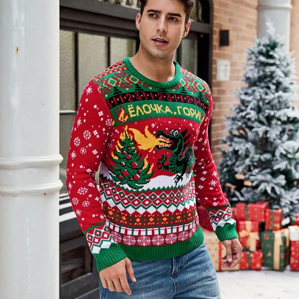 2025 Winter Christmas Men's Knitted Sweater Cartoon Print Full Sleeve O Neck Warm Soft Knitwear Adults Jumper Xmas Look Pullover