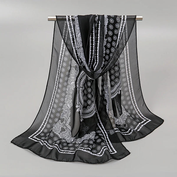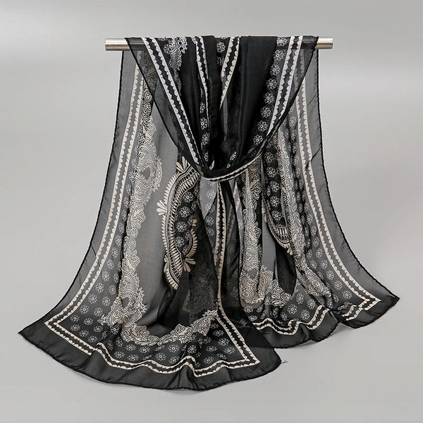 Indian Style New Chiffon Scarves Women Breathable Thin Simulation Silk Scarf Ladies Shawl And Wraps Women Printing Hijab Stole