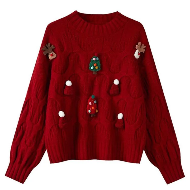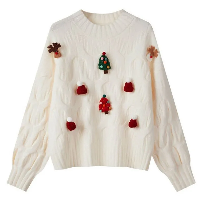 Sueter Mujer 2024 Korean New Sweater Women O Neck Christmas Cartoon Design Knitted Top Cute Fairycore Fashion Pullover CR3335