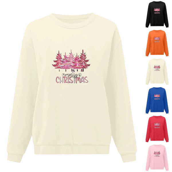 2024 Christmas Pullover Sweater Women's Winter Long Sleeve O-Neck Pullover Sweatshirts Funny Xmas Tree Print Graphic Sweater