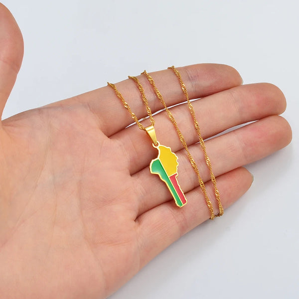 Anniyo Benin Map Flag Pendant Necklaces for Women Men Gold Color Beninian Jewelry #278521