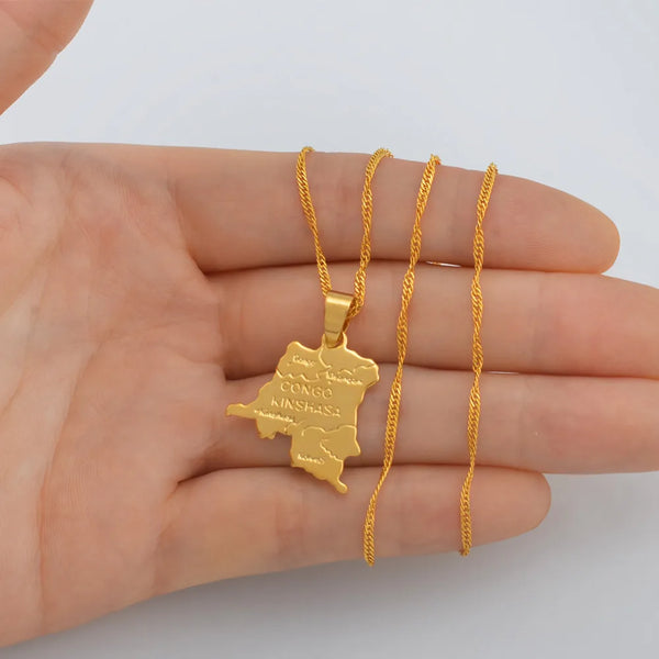 Anniyo Democratic Republic of the Congo Small Map Gold Color DRC Pendant Necklace Chain 45cm/60cm Jewelry For Women Girl #201610
