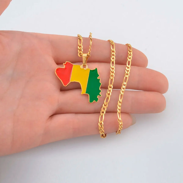 Anniyo Guinea Map & Flag Pendant Necklaces for Women/Men Gold Color Jewelry Map Of Guinea Necklaces Guinee #116706