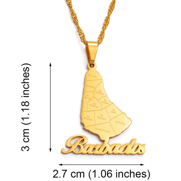 Anniyo Map of the Barbados Island With City Names Pendant Necklaces Silver Color/Gold Color Maps Barbados Jewelry #125121
