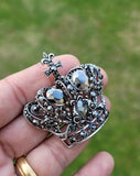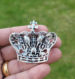 Crown Brooch Stunning Vintage Look Silver Plated Black Main Stones ROYAL Design Broach