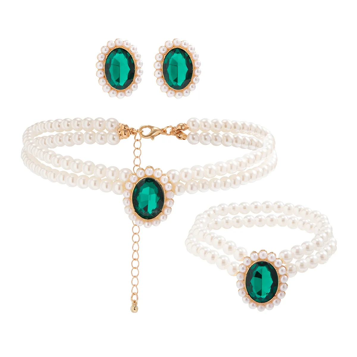 DIEZI Punk Multi layer Round Imitation Pearl Beads Necklace Earrings Bracelet Vintage Jewelry Sets Party Gift 2023 New Jewelry