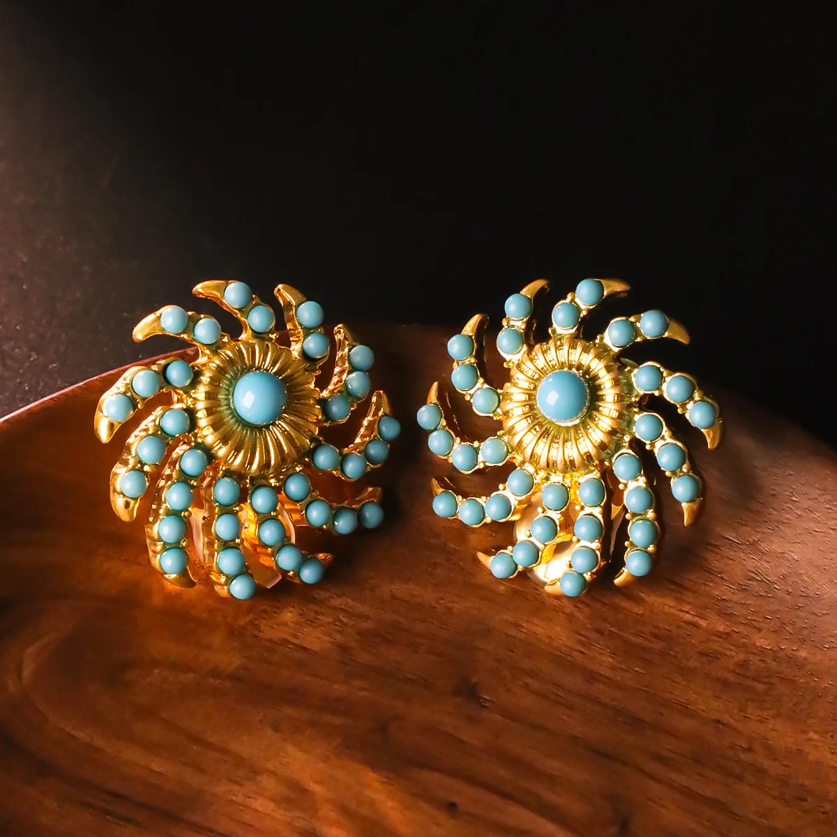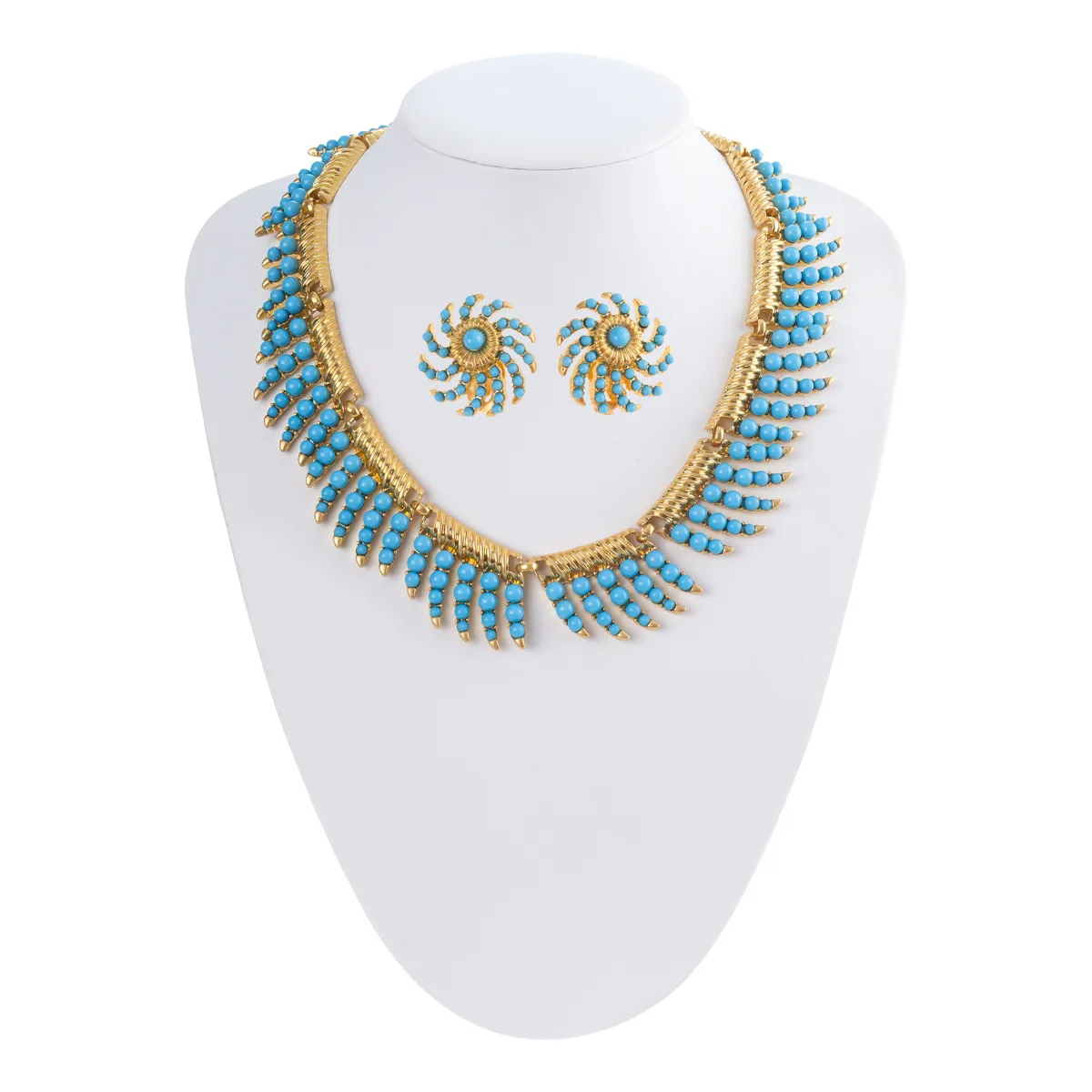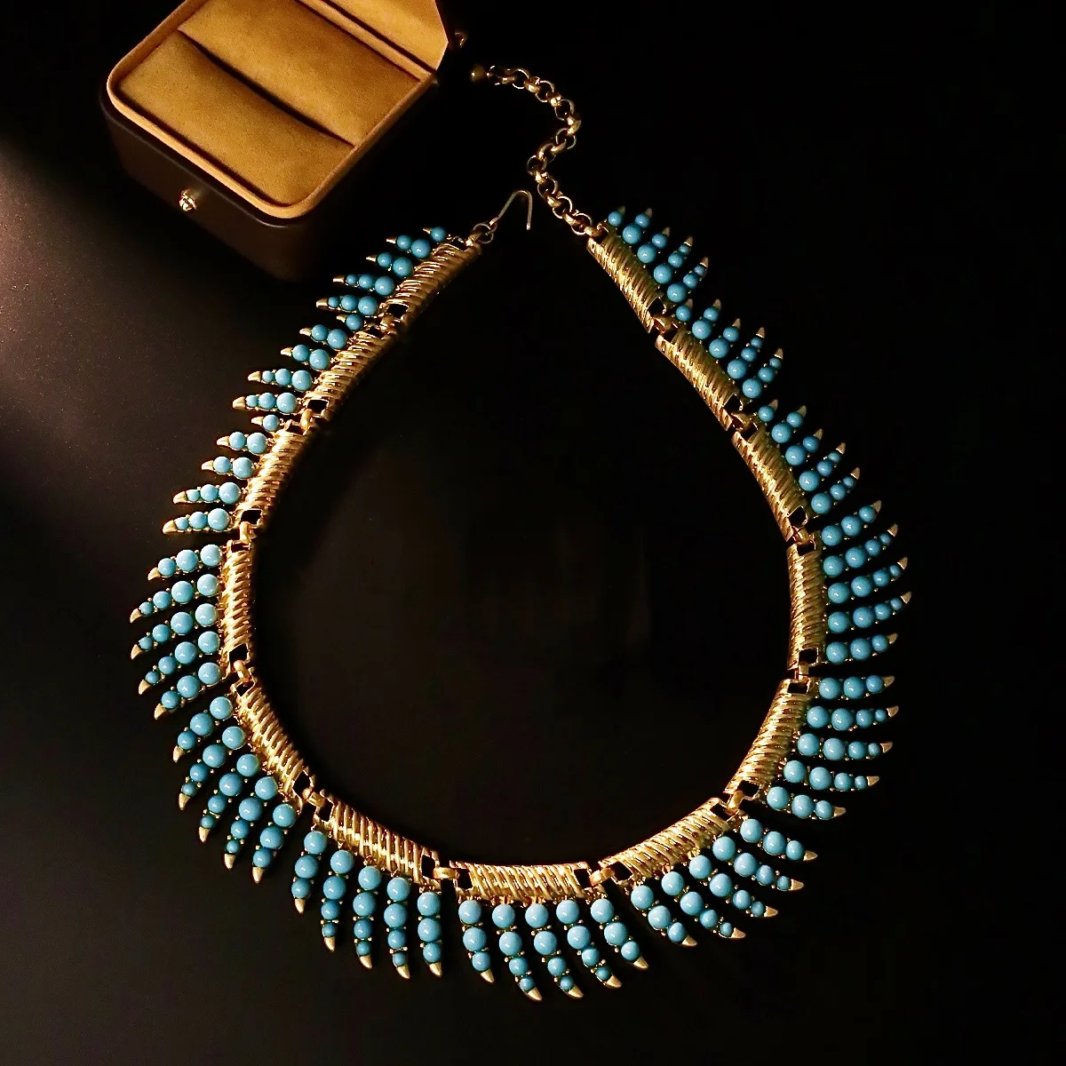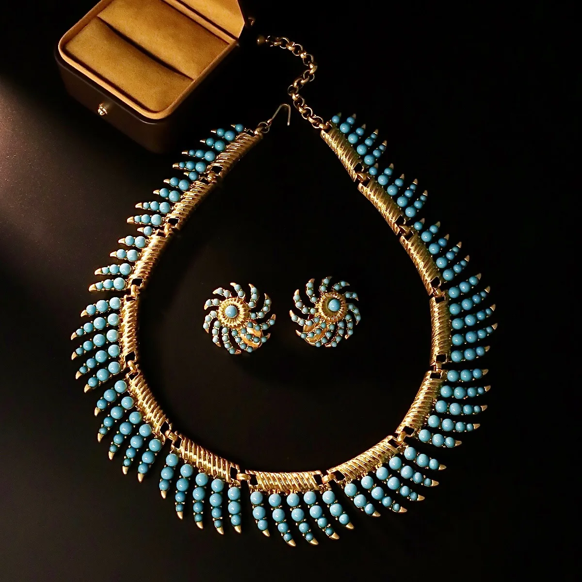 European And American Fashion Retro Niche Inlaid Stone Ear Clip Temperament Personality Necklace Collarbone Chain Set