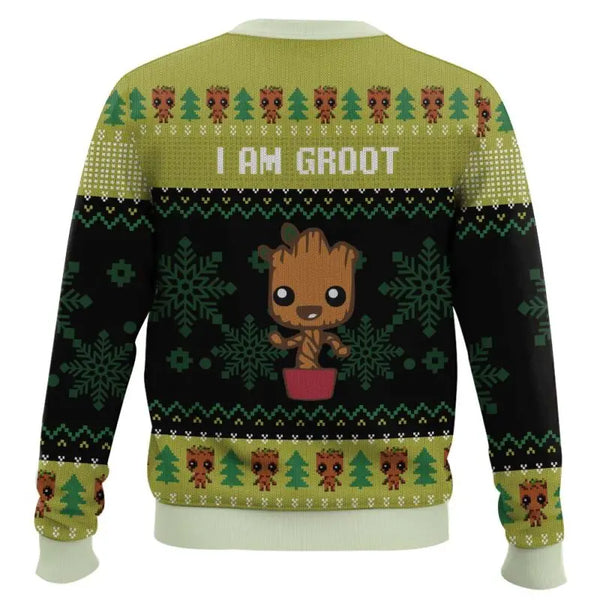 Marvel superhero Groot Christmas Ugly Sweater Yellow Green Black Snowflake Christmas Tree Cute Personality Fashionable Cool