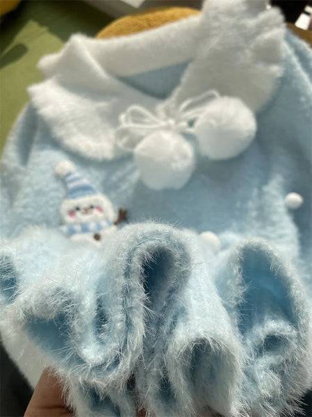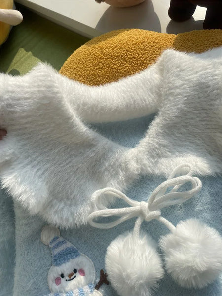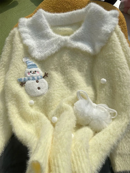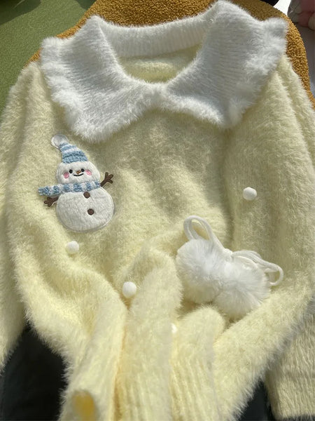Sweet Faux Mink Cashmere Sweaters Women Kawaii Snowmen Long Sleeve Knitted Pullover Casual Cute Preppy Style Chic Loose Jumpers