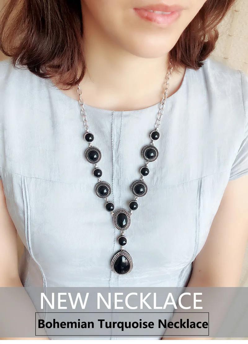 Type: Vintage Turquoise Necklaces,Water Drop Shaped Necklace,Women Gem Pendant Necklaces