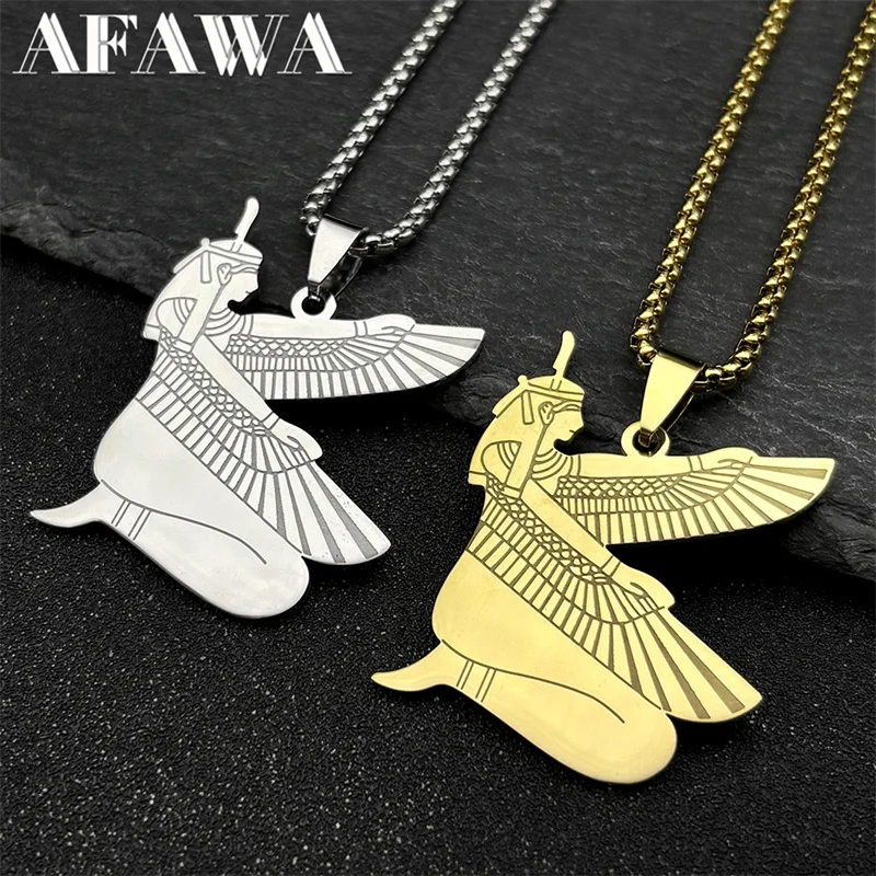 - Egyptian Isis Goddess of Life Necklace for Women Men Stainless Steel Gold/Silver Color Egypt Mystery Amulet Chain Jewelry