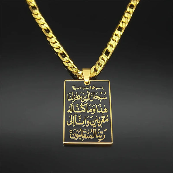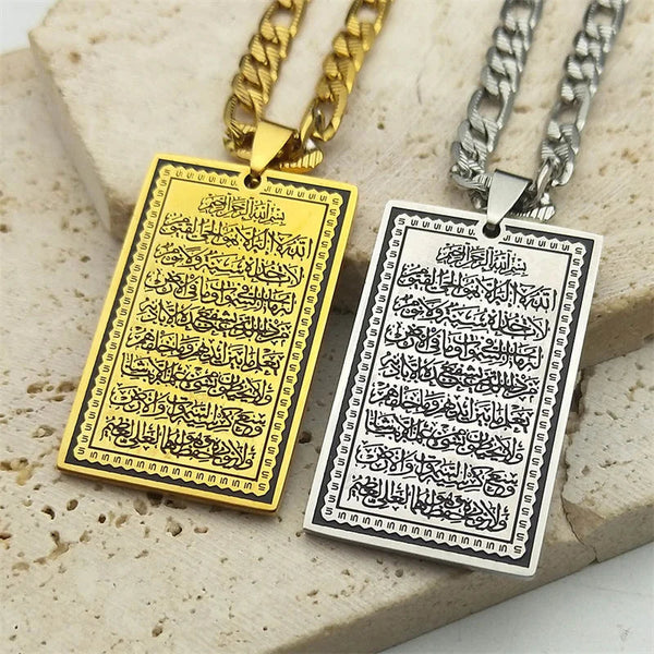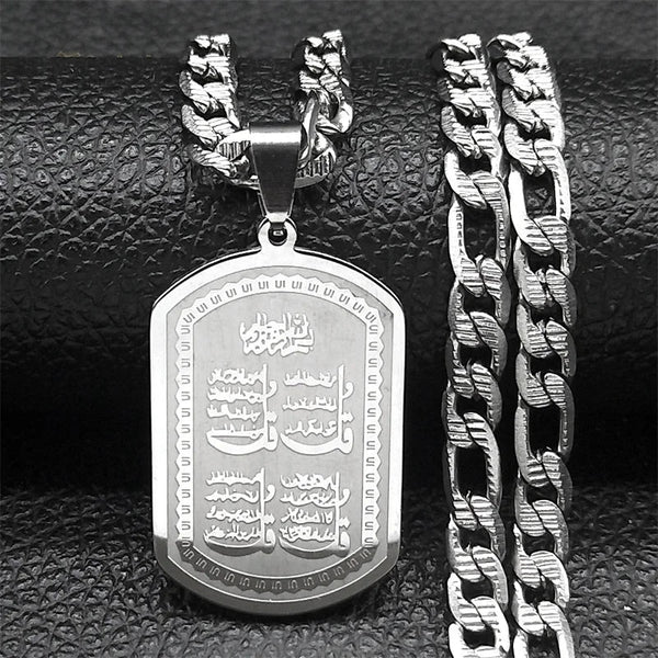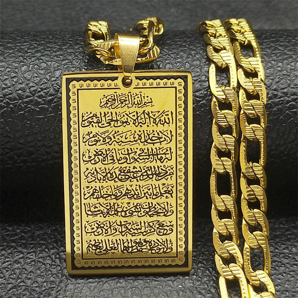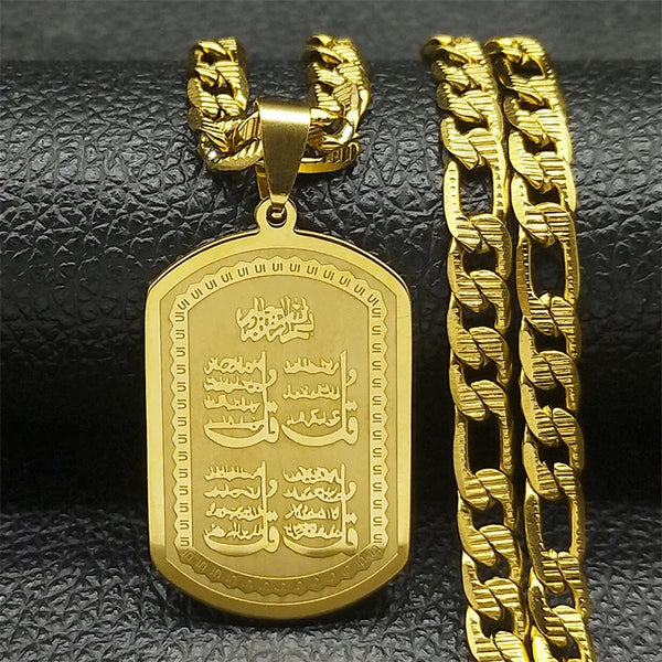 Islam Muslim Arabic Quran Medal Pendant Necklace for Women Men Stainless Steel Gold Color Hip Pop Religion Arab Jewelry Gifts