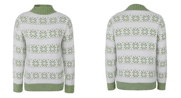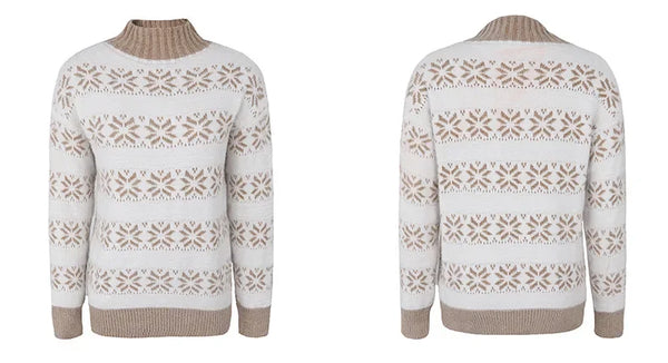 2025 Christmas Jumpers Women Mock Neck Full Sleeve Sweater Snowflake Jacquard Knitwear Warm Thick Pullover Top Xmas Party Look