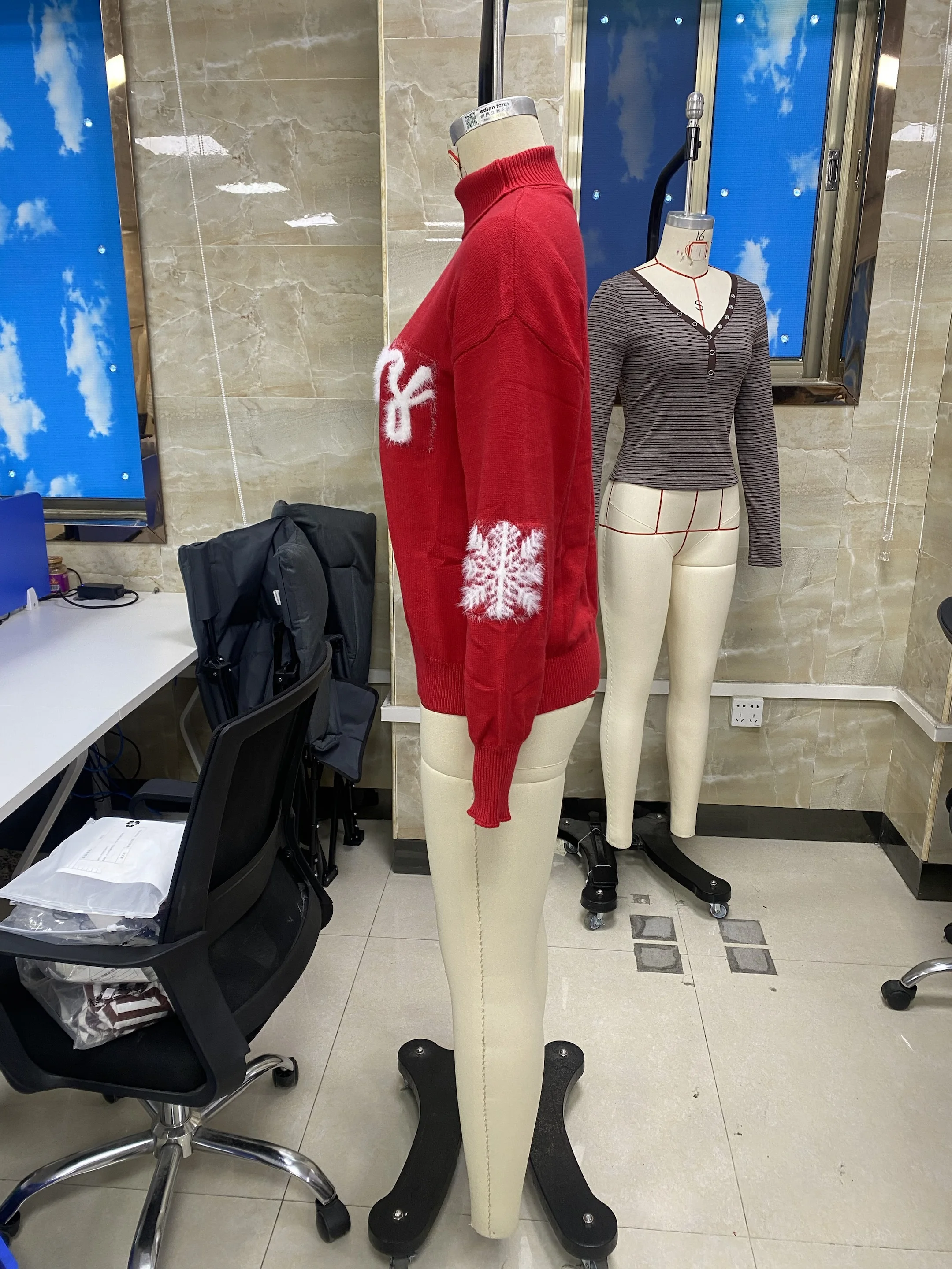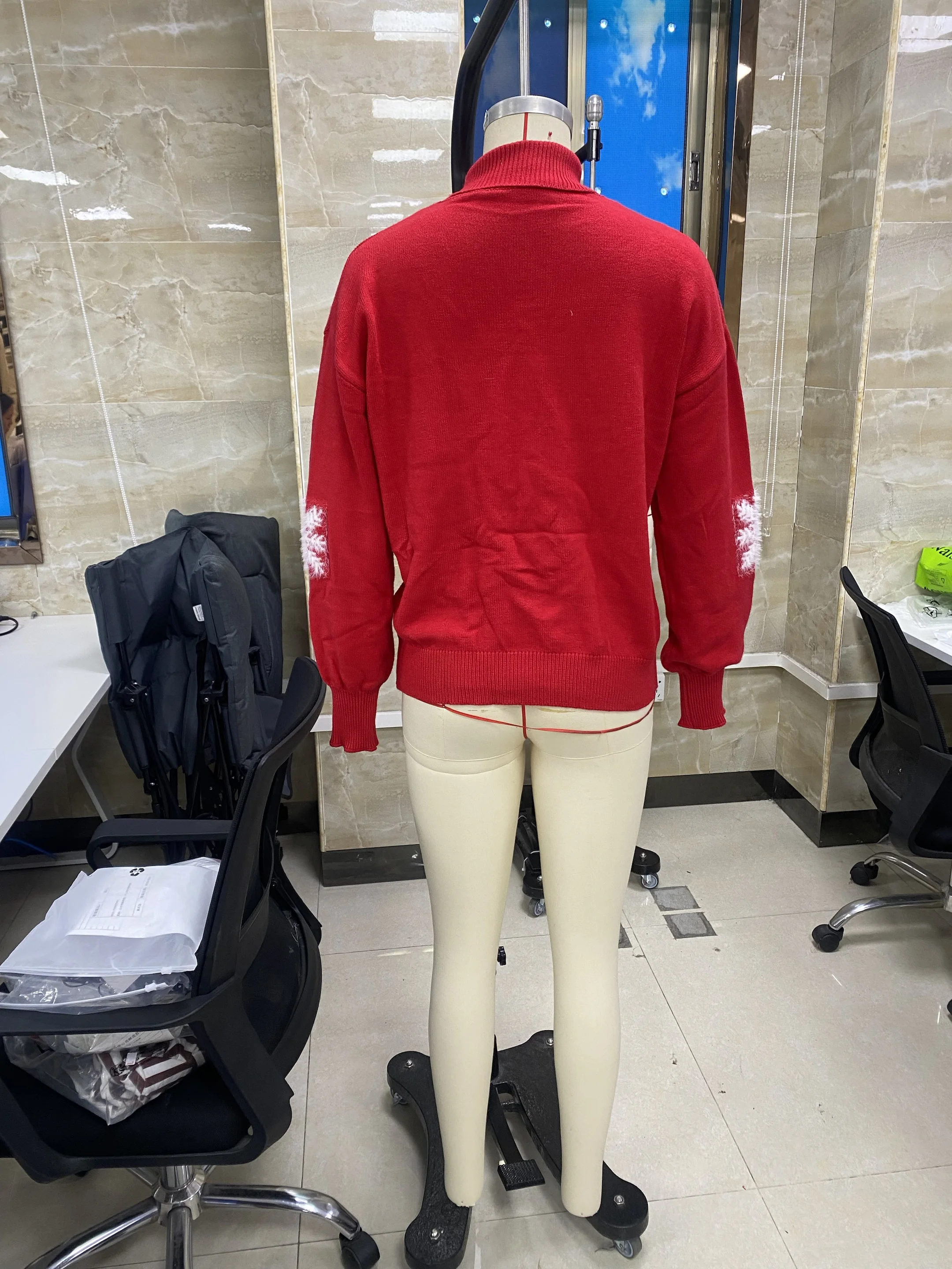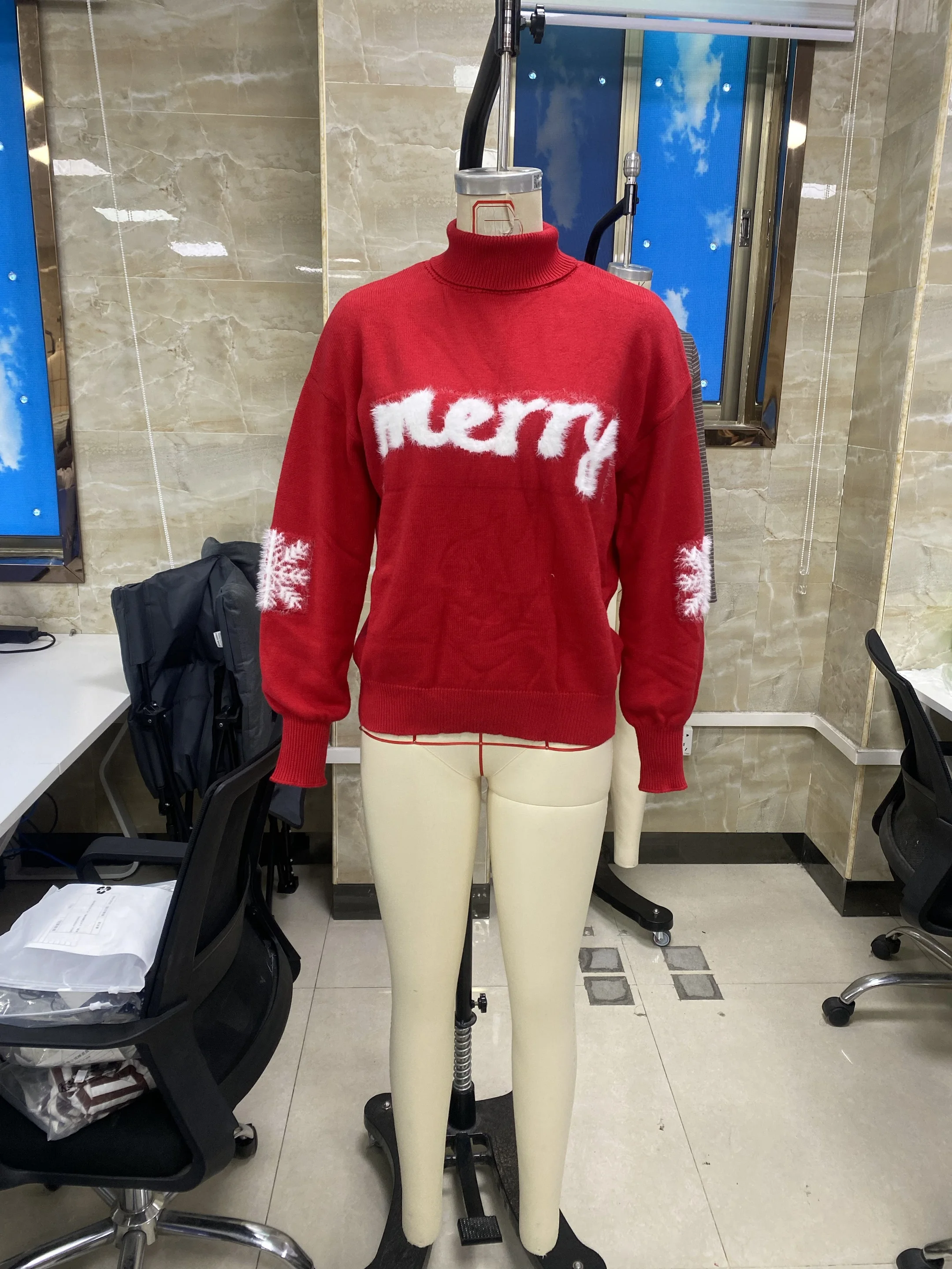 Women's Autumn Loose Sweater Letter Embroidery Long Sleeve Turtle Neck Knitwear Pullover for Christmas