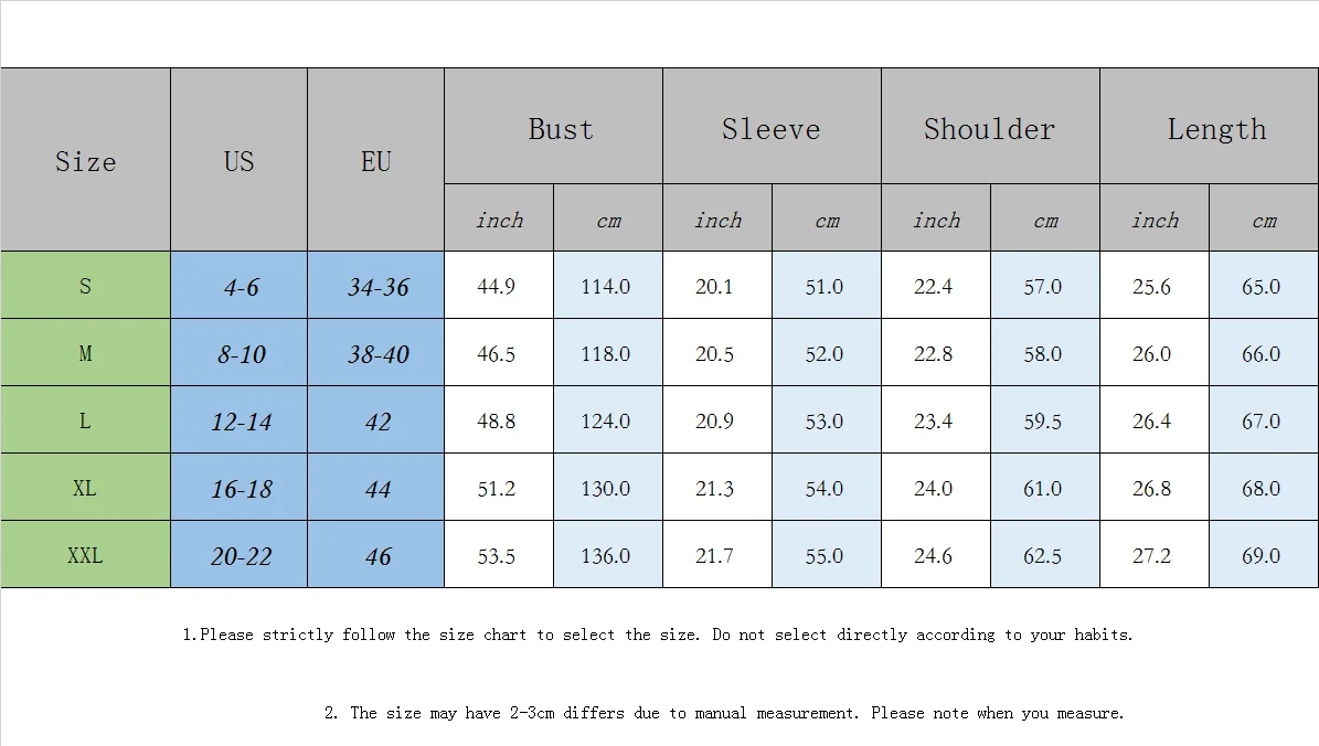 S Length: 25.6 Bust: 44.9 Shoulder: 22.4 Sleeve Length: 20.1