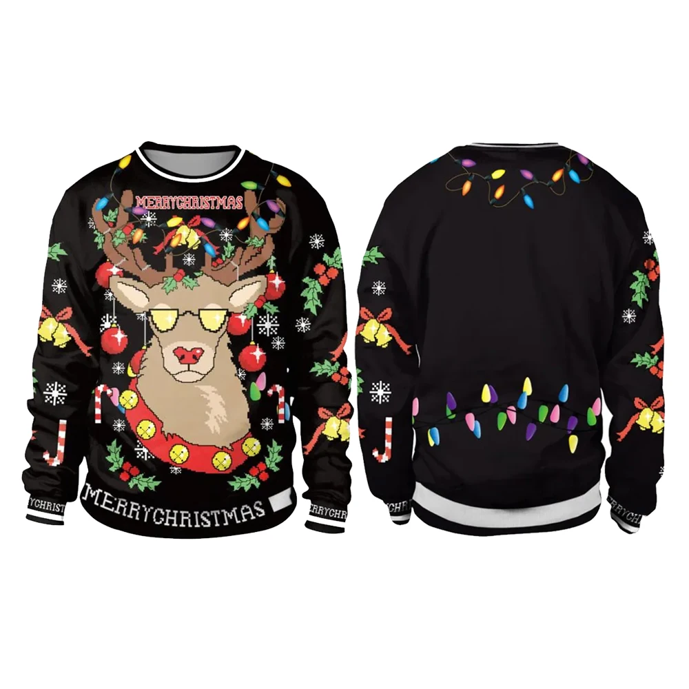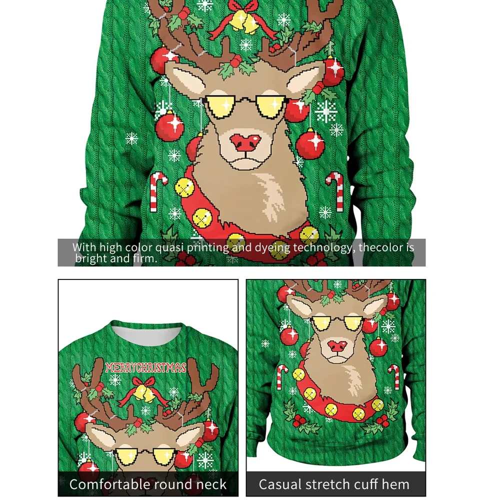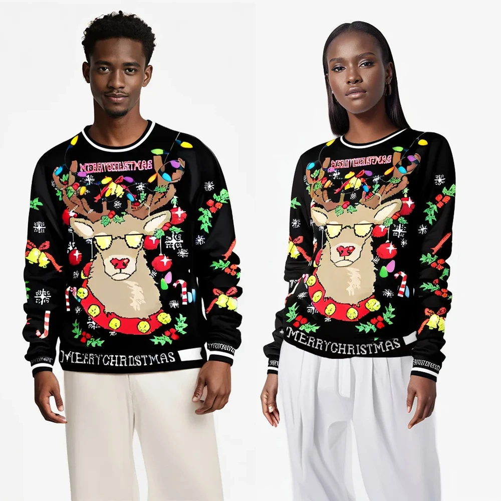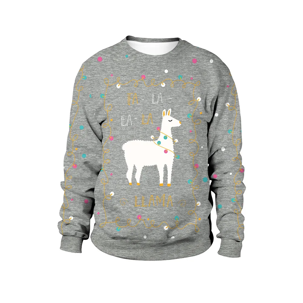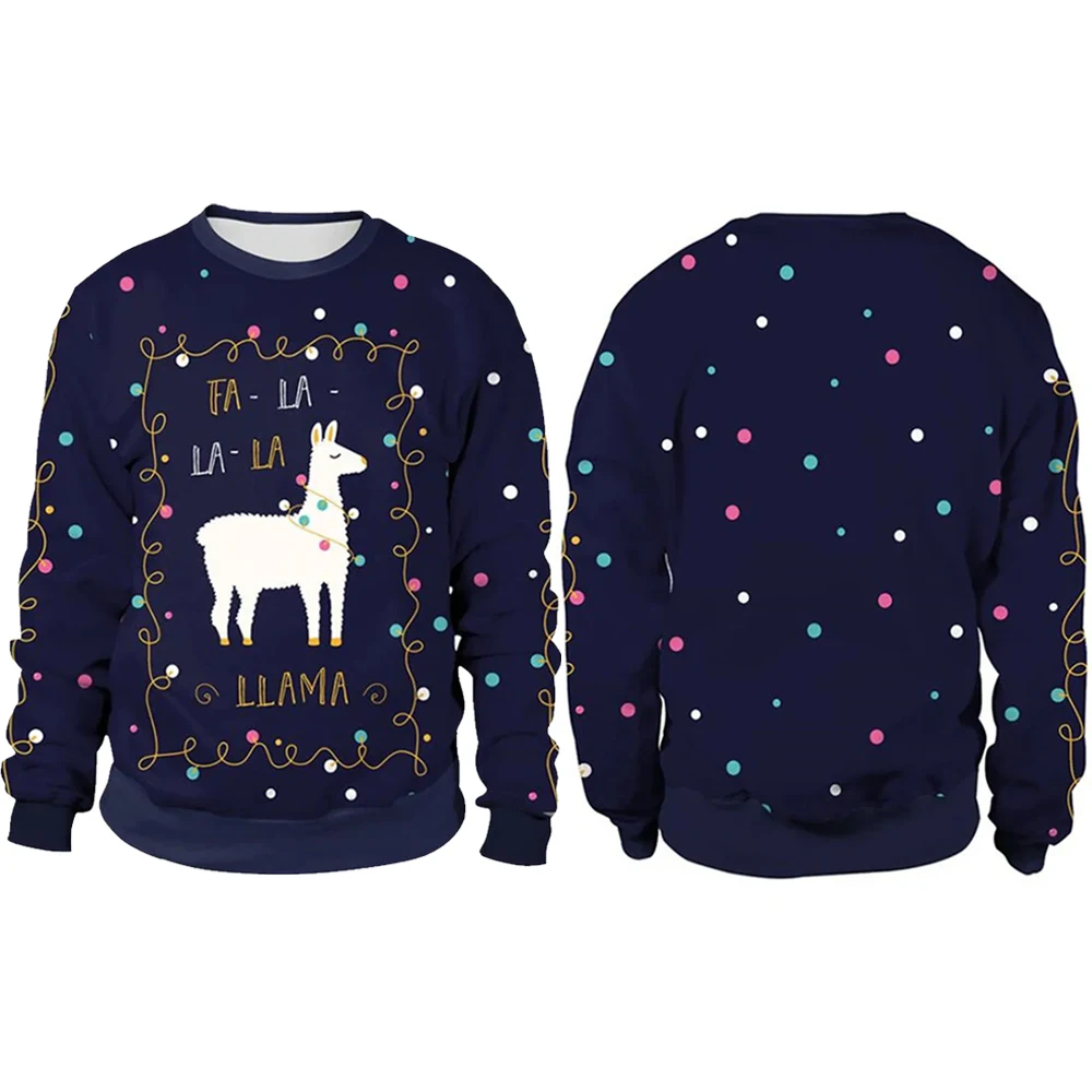 Men Women Llama Ugly Christmas Sweatshirt 3D Funny Print New Year Eve Xmas Sweater Couples Pullover Holiday Party Jumper Tops