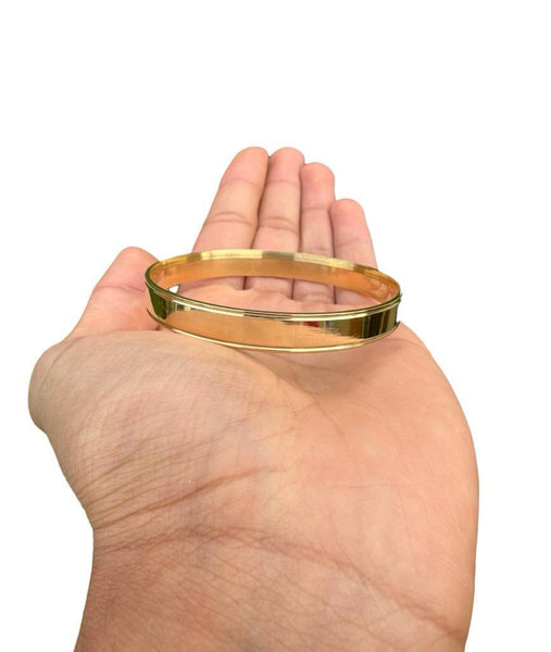 Brass Sikh Kara Singh Kaur Khalsa Gold Look Bangle Flat Smooth Kada Bracelet OJ1