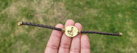 Should fit all arms with kara size XSmall 5.8cm to Large 7.3cm.Evil Eye Protection Hindu Good Luck BangleHAND MADE - EACH KARA design may slightly vary as these are assembled by different workers.Golden colour - Antique Affect - Brown FAUX leather strap and safety lock clasp to tie on arm. These are worn straight on arms.Mantras performed/Sidhi done by a Priest in Amritsar on these bracelets. * Healing Kada * Meditation Kara * Positive energy * Encouragement and Motivational ring * Evil Eye Protection * Good LuckOnly Kara/bracelet per sale unless you add more quantity. Photos are for information purpose and to show details of the items.Colour may slightly vary due to light and flash conditions. There may be slight scruff marks on some kara that are seen on all kara form Amritsar as these are transported in Jute bags in jumbles.Should you have any questions please do not hesitate to contact us. Stay blessed!