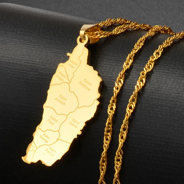 Anniyo Dominica Map City Name Pendant Chain Necklaces for Women Girls Dominica Maps Stainless Steel Jewelry #075121