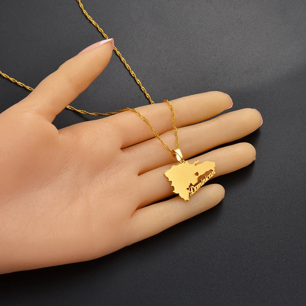Anniyo Dominican Map Pendant Necklaces Dominicans Country Map Jewelry Chain Patriotic #124721