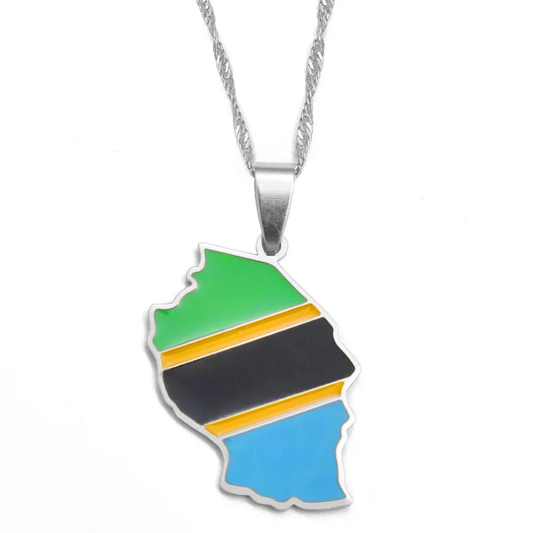 Anniyo Tanzania Map Flag Charm Pendant Necklaces Tanzanian Jewelry for Women Girls Men #269921