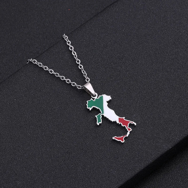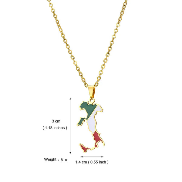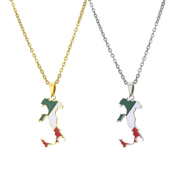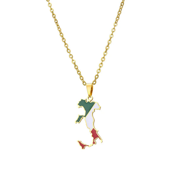 Italian map pendant stainless steel necklace famous ethnic style female niche design sense of light luxury geometric drip oil je
