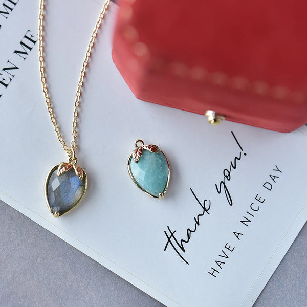 ITSMOS Strawberry Labradorite 14k Gold Plated Pendant Necklace Luxury Faceted Gemstone Aquamarine Pendant Jewelry Gift for Women