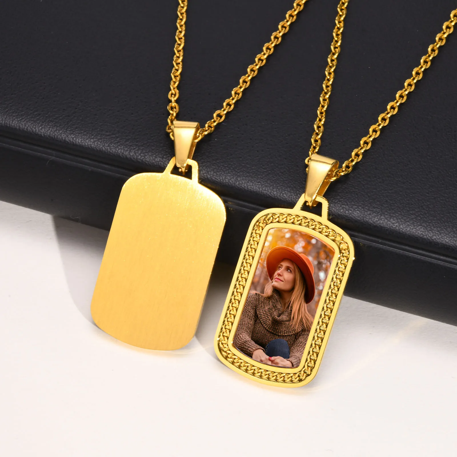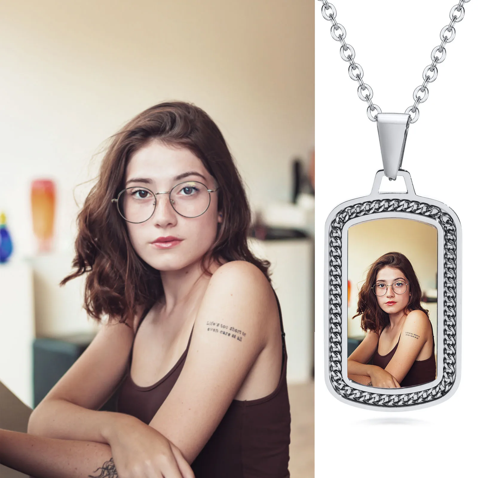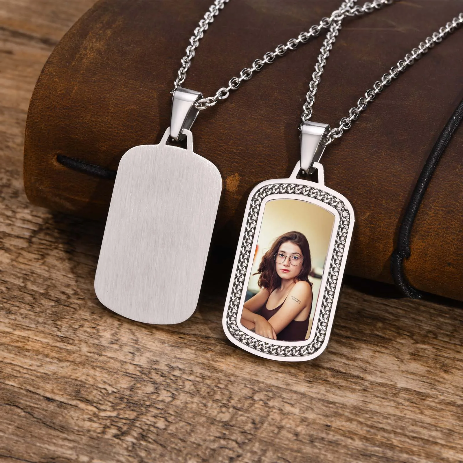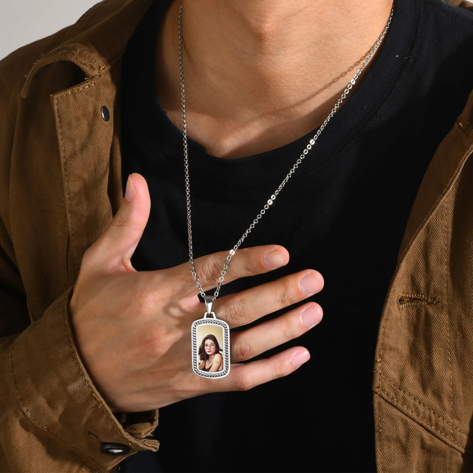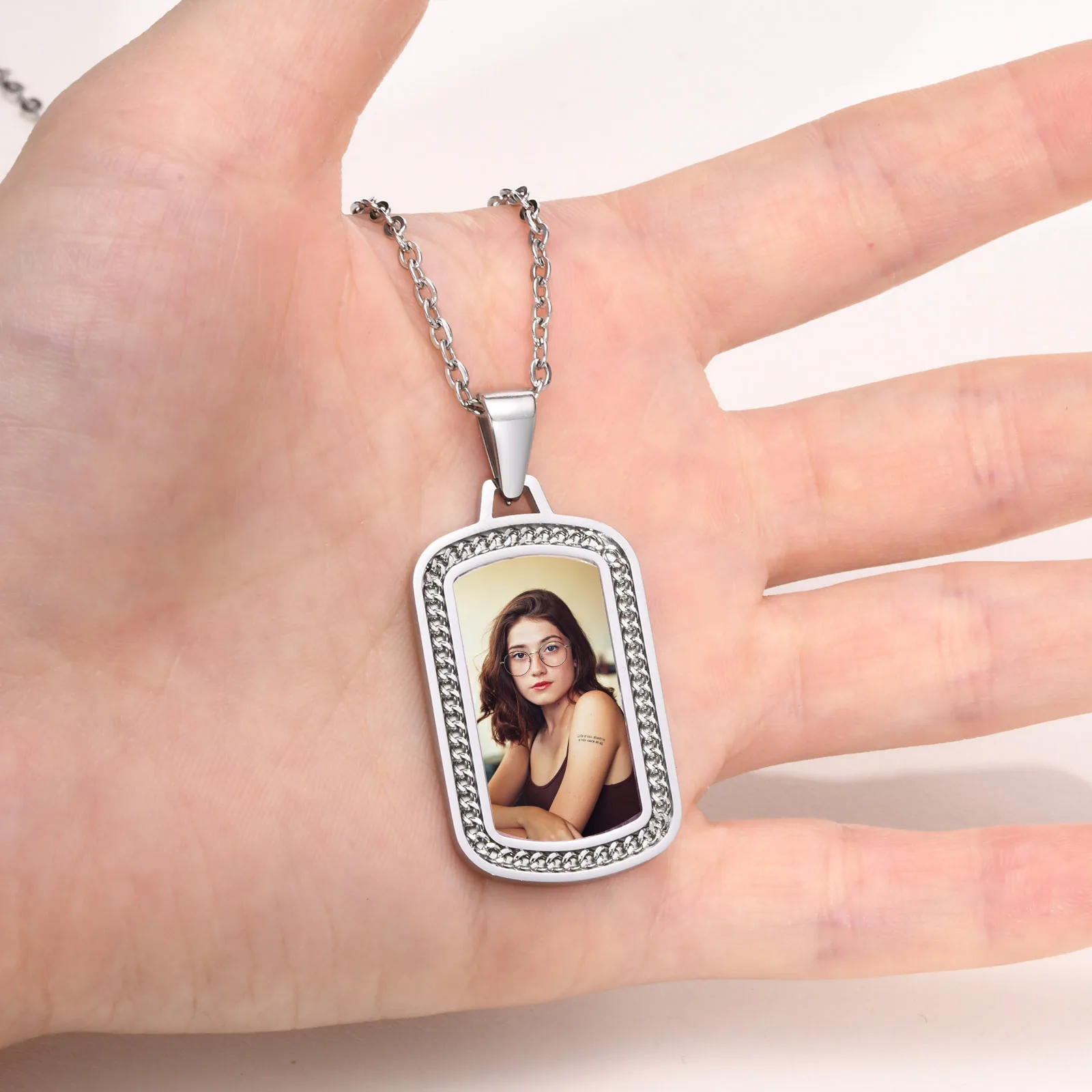 Men Personalize Engrave Name Square Customizable Photo of Family Necklaces, Picture Words Date Pendant,Keepsake Gifts Collar