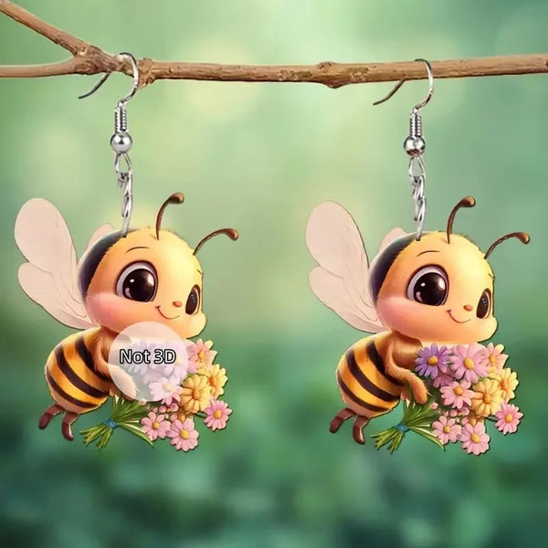 1 pair of original design little bee acrylic earrings holding sunflowers, a pair of beautiful and interesting ladies earrings g
