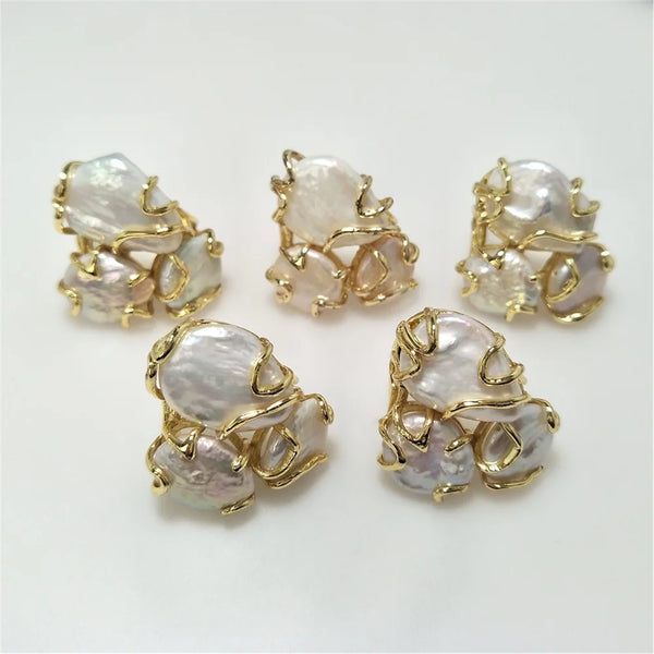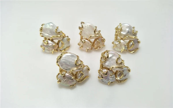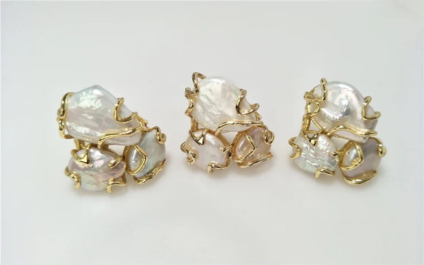 1Pcs Natural Freshwater Pearl Rings,Goden Plated Adjustable Ring Jewelry For Beautiful Women Valentines Gift RG052