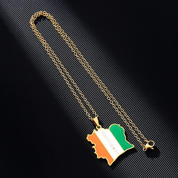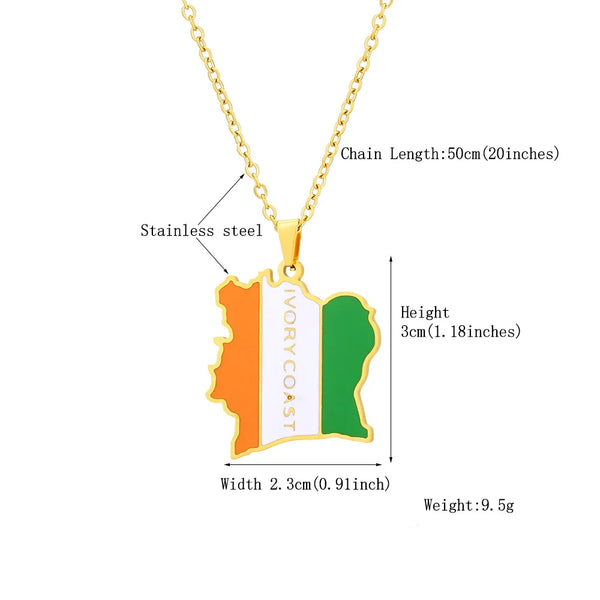 2024 new fashion stainless Cote d 'Ivoire map with flag pendant necklace temperament everything collarbone chain birthday annive