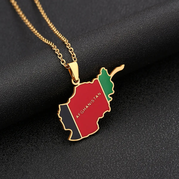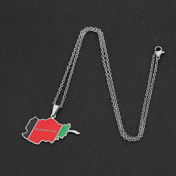 2024 New fashion stainless steel Afghanistan map necklace for men and women geometric titanium steel pendant ethnic style collar