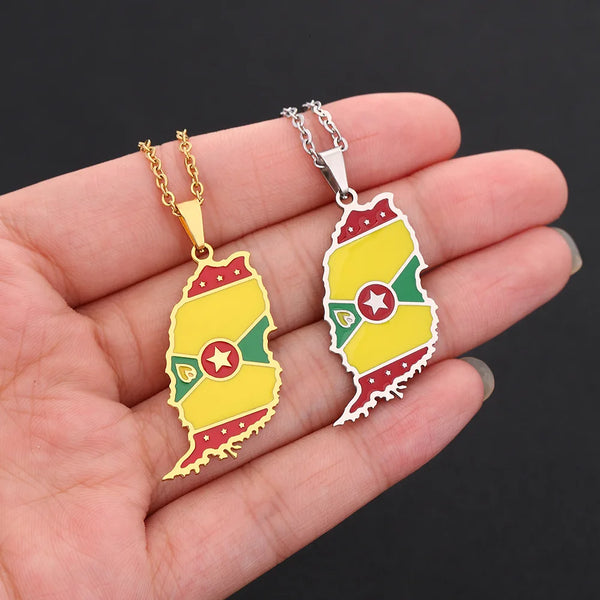 2024 new fashion stainless steel Grenada map necklace for men and women geometric ethnic style collarbone chain anniversary smal
