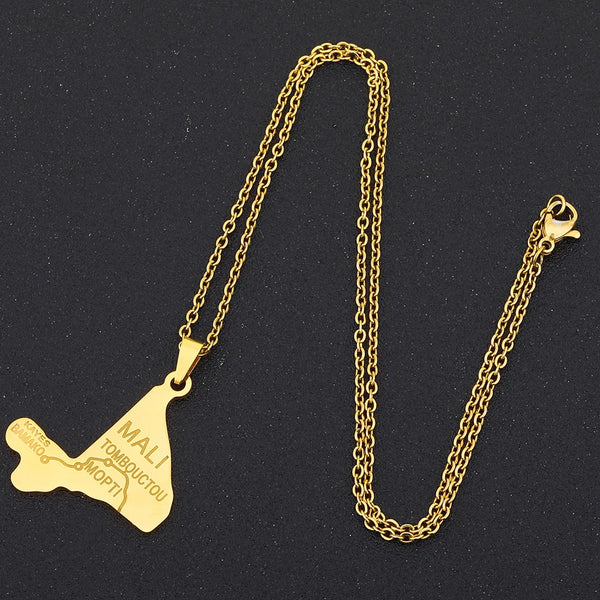 2024 New fashion stainless steel Mali map pendant map necklace for men and women geometric titanium steel pendant national style