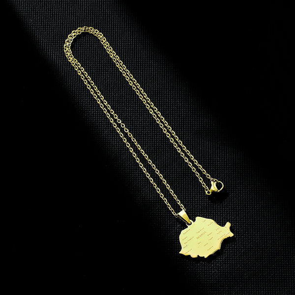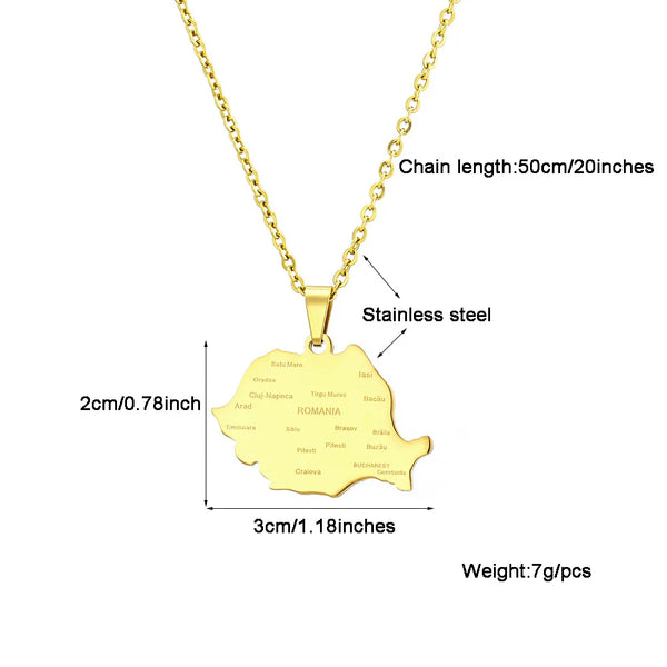 2024 new fashion stainless steel Romania map with city pendant necklace temperament everything collarbone chain birthday anniver