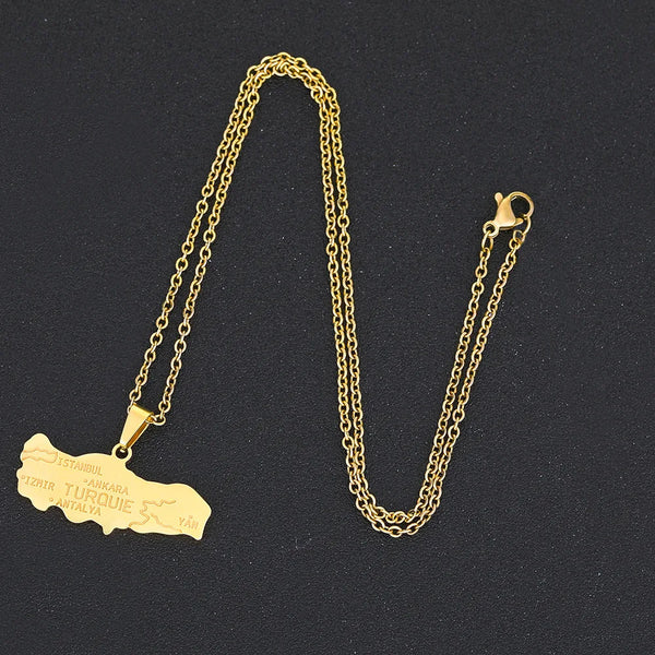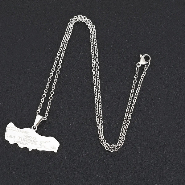 2024 New fashion stainless steel Turkish map necklace for women and men couples ethnic style accessory collarbone chain annivers