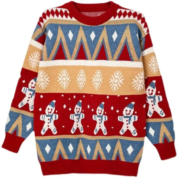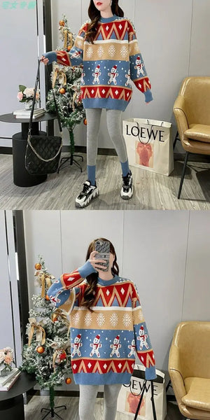 2025 Autumn Winter New Loose Oversized Sweater Women Christmas Snowflake Knitted Longline Thickened Pullover