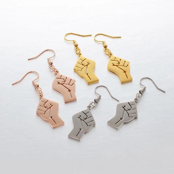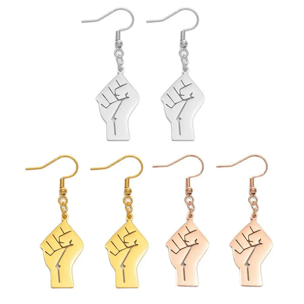 Anniyo 2.8CM Black Lives Matter Fist Symbol Earrings Rose Gold Plated,Silver Color Stainless Steel BLM African Jewelry #200421