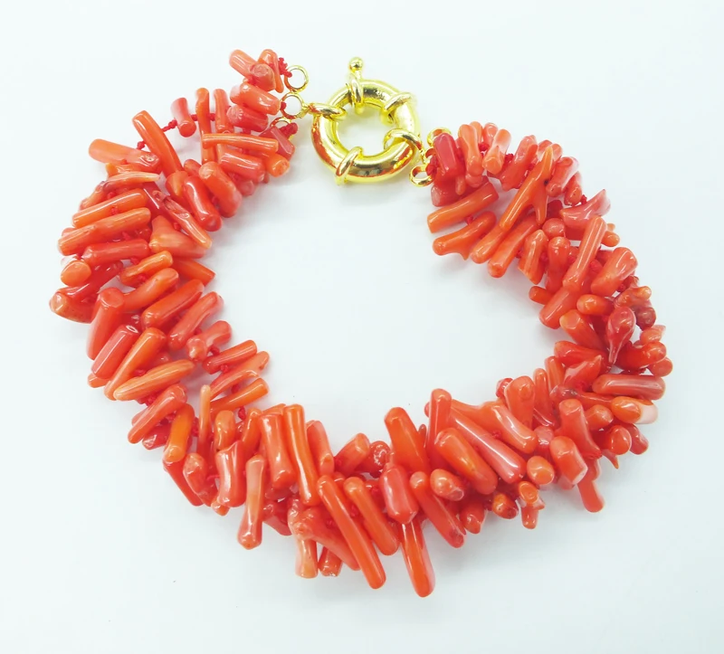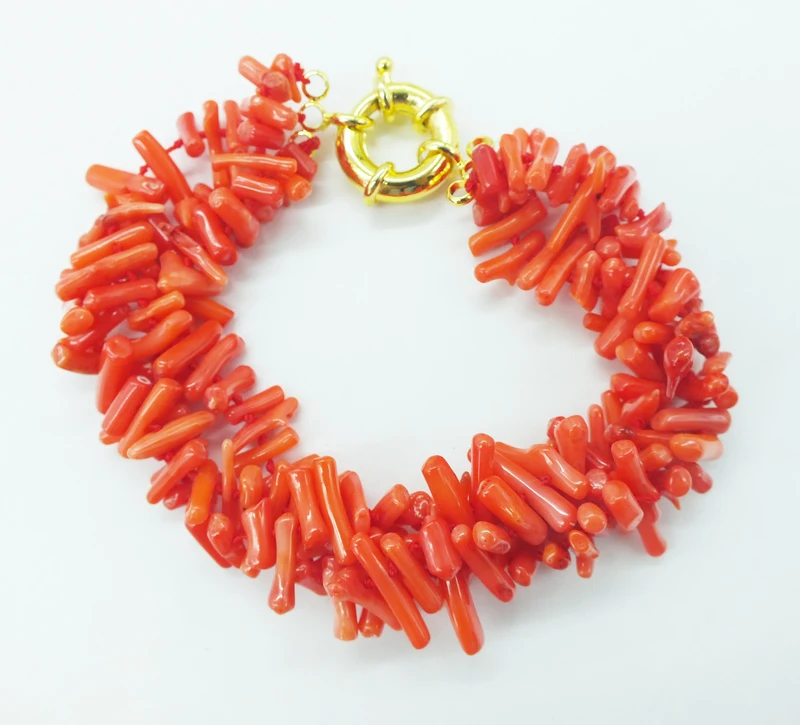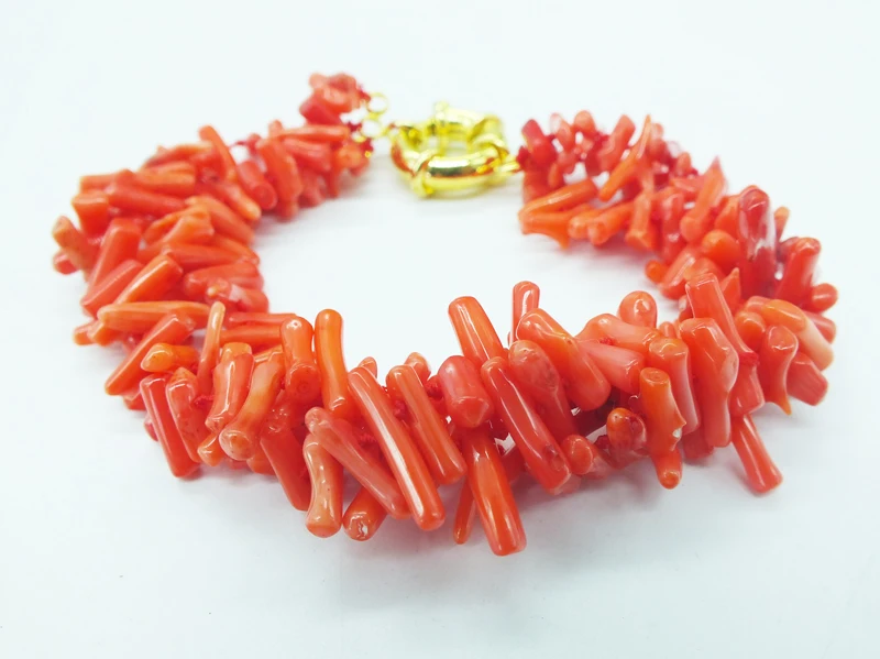 Coral Bracelet ! Classic 3 strands of natural irregular orange coral bracelet 9.5"