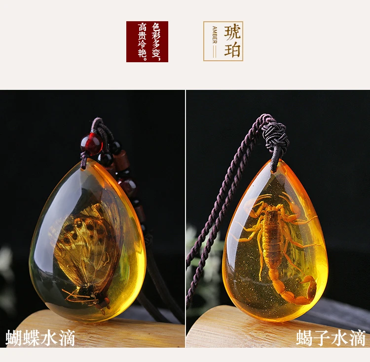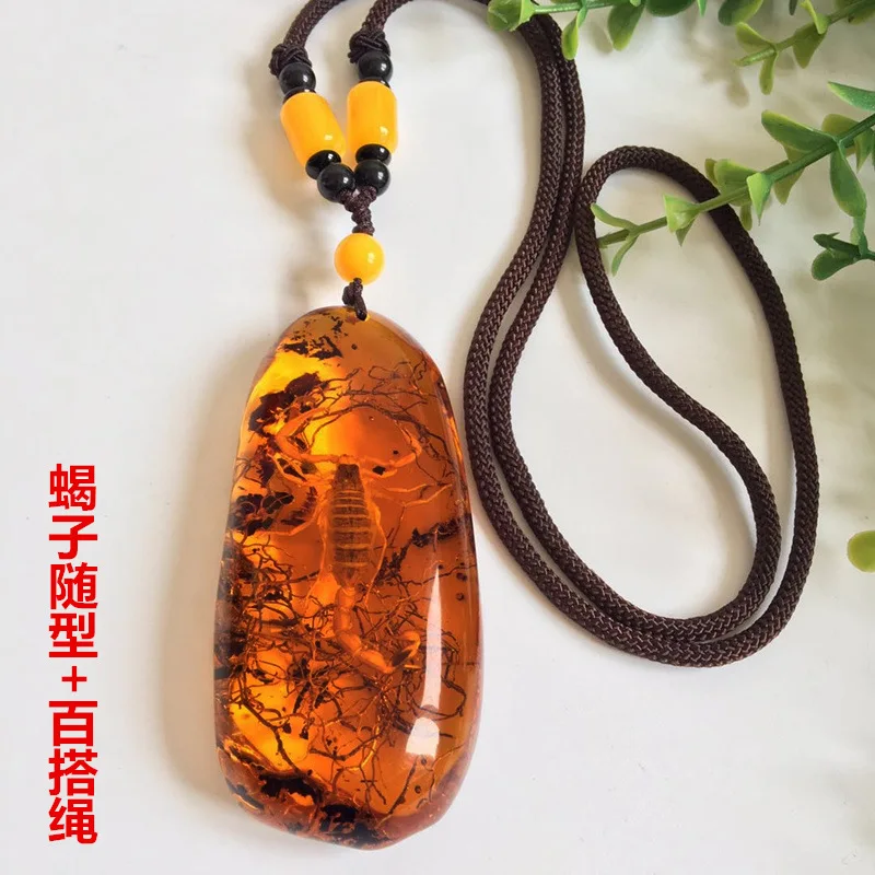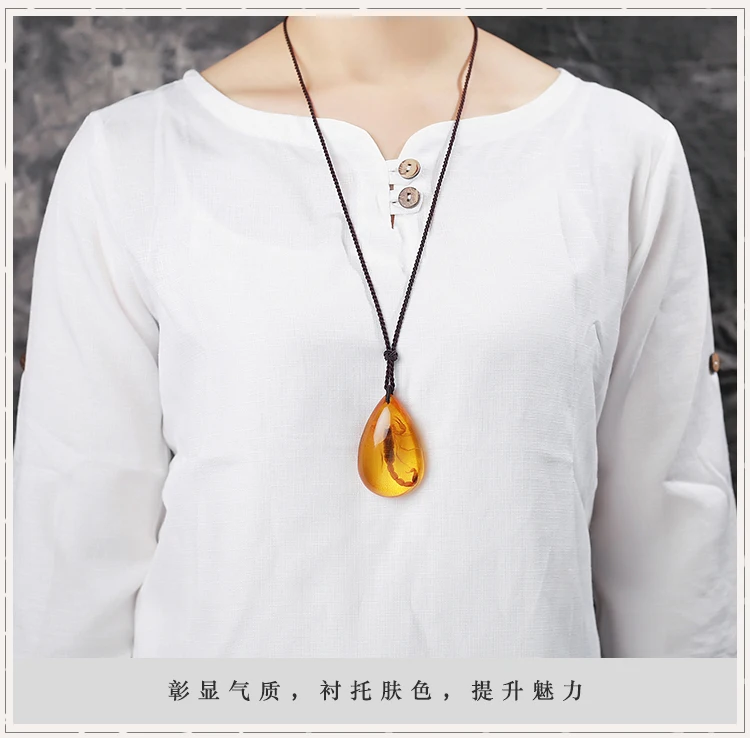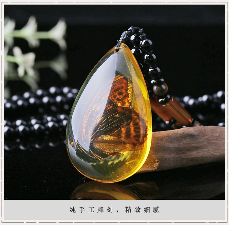 Natural Baltic Amber Butterfly Necklace Men Women Healing Gemstone Fine Jewelry Scorpion In Amber Pendant Sweater Chain Necklace
