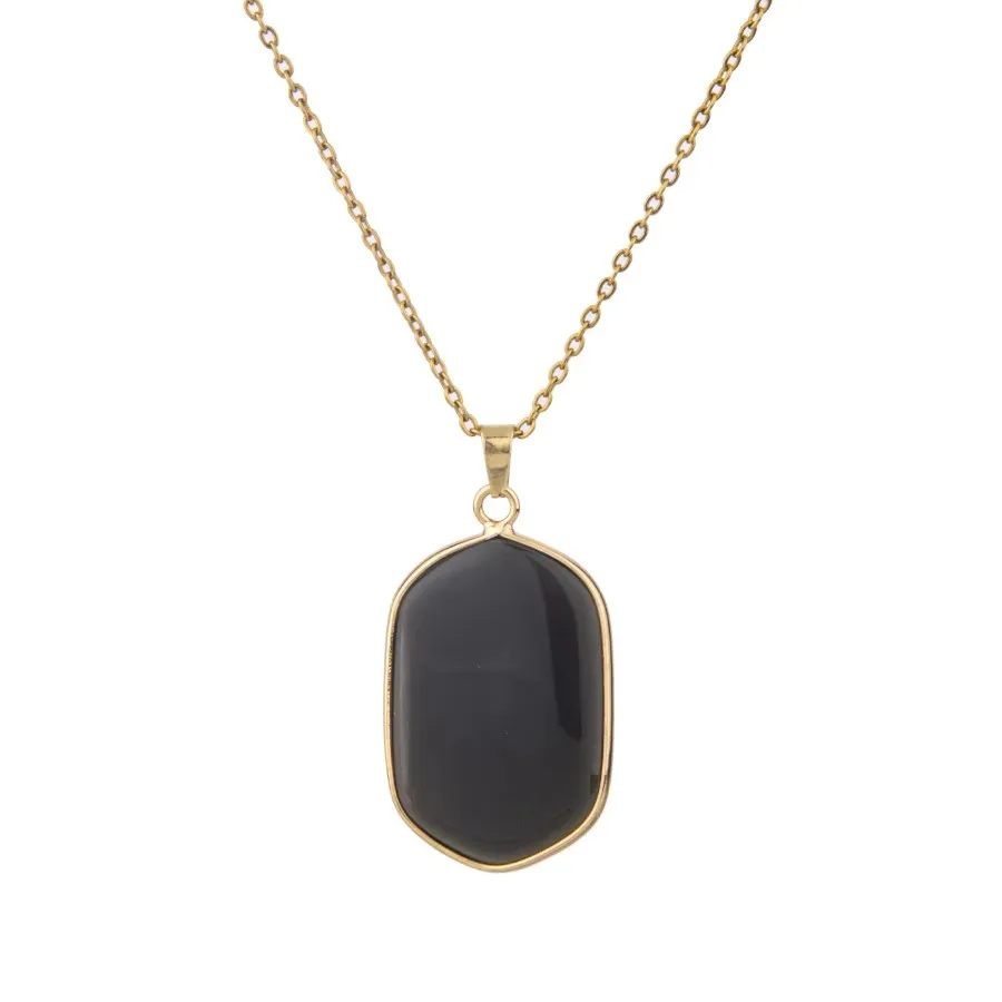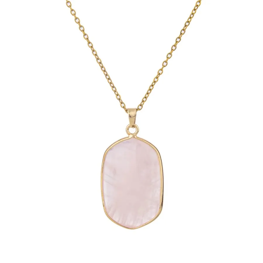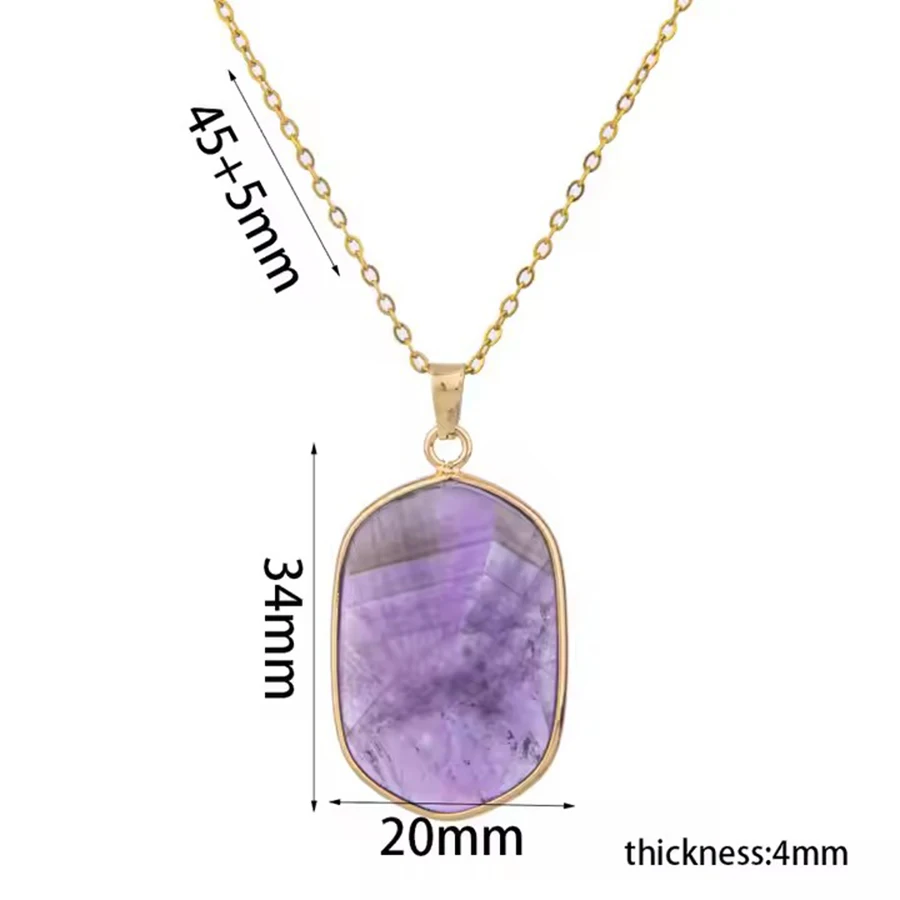 Natural Crystal Stone rose quartz amethyst geometric figure agate Pendant Necklace Stainless Steel gold Chain Gemstone Jewelry