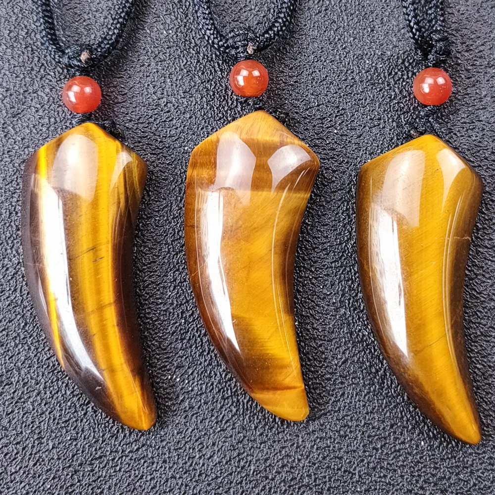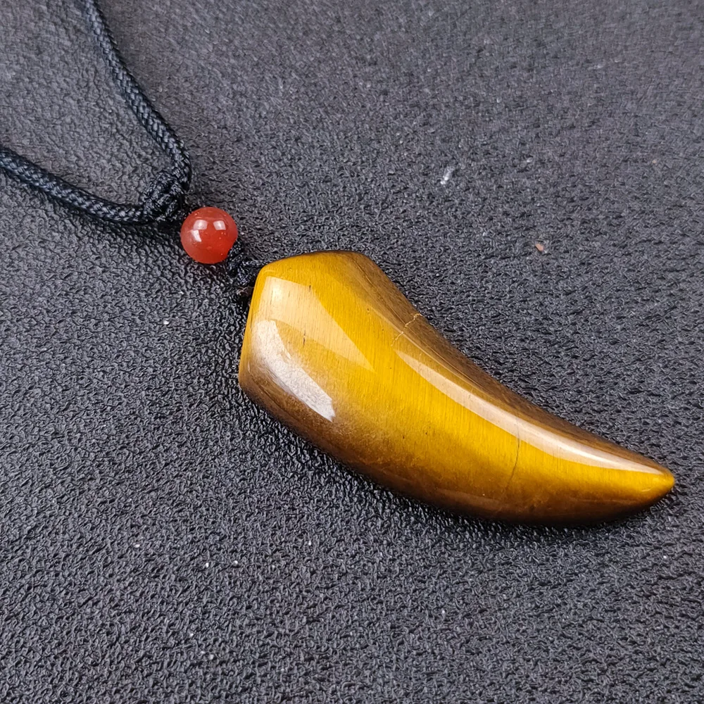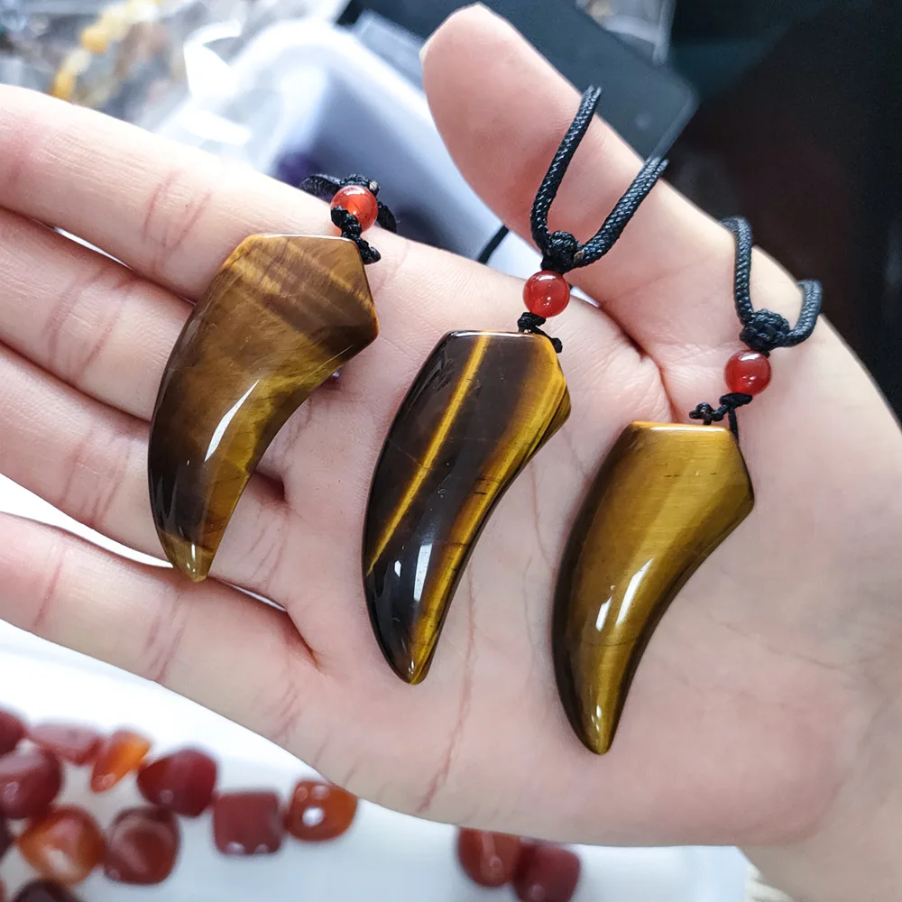 Product Name: Natural Tiger Eye Stone Wolf Tooth Spike Pendant Necklaces for Women Men Adjustable Ox Horn Shape Couple Choker Medition Jewelry