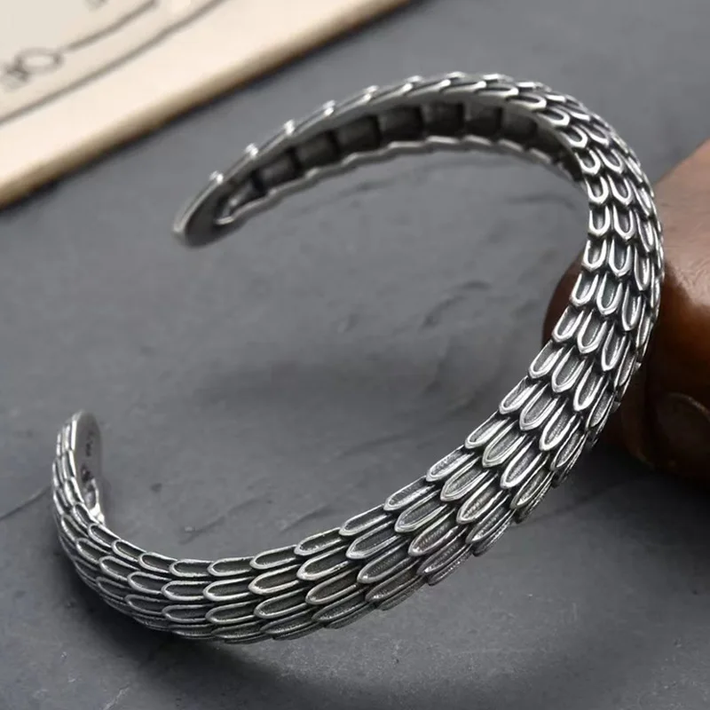 Personality Dragon Scale Bracelet Men's Trend Fashion Retro Chinese Style Reverse Scale Viper Opening Bangles Cuff Jewelry