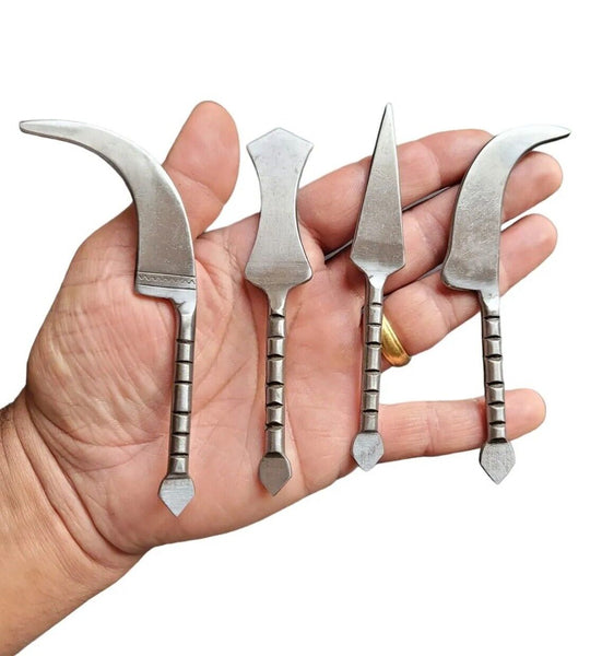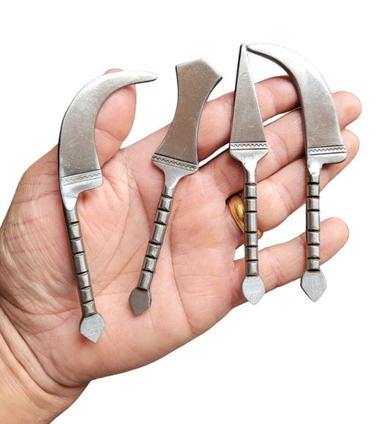 Size: approx. 11.5cm x 2.2cm, Weight of whole set approx. 112g Set contains one Teer, Two Talvaars and one Khanda as shown in photos