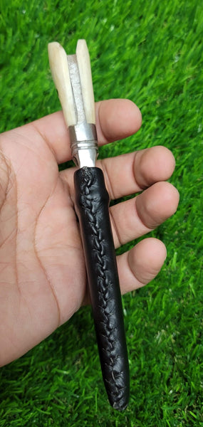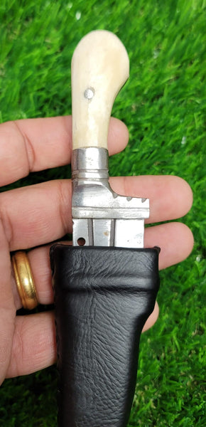 Handle is made of camel bone. Whole design is handmade and unique, customised by Onlinesikhstore.