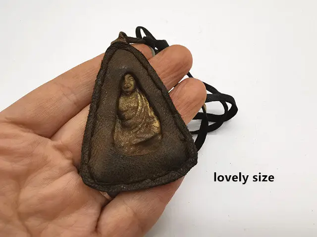 Tibet Local Pocket BUDDHA Amulet With Cow Leather Chain Necklace TNL392