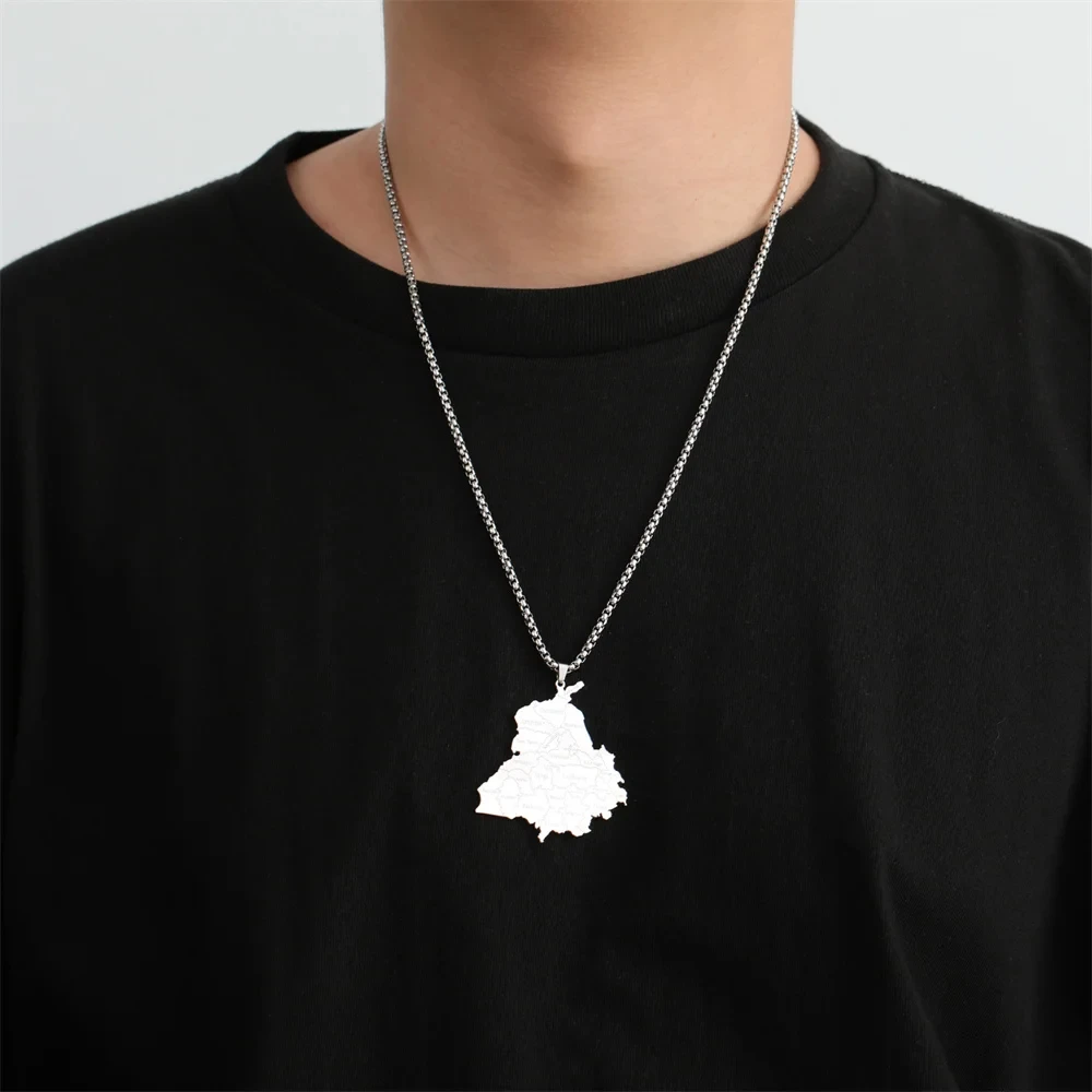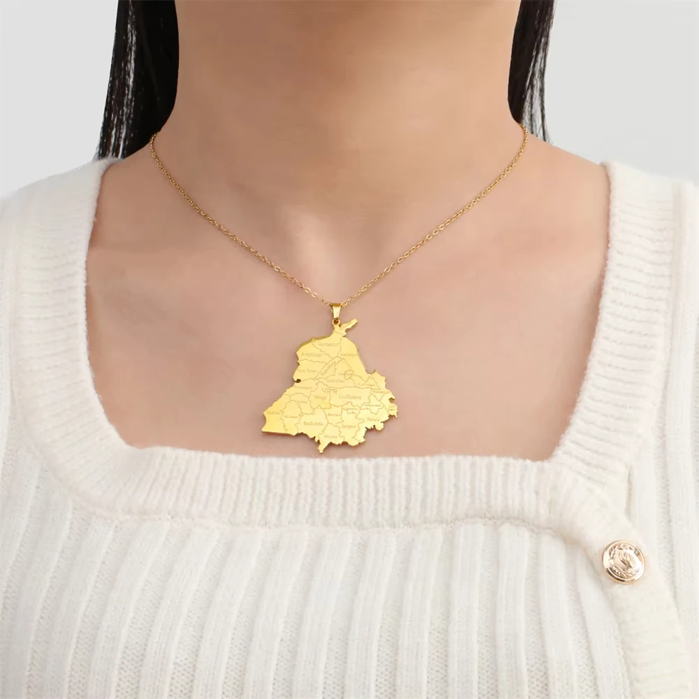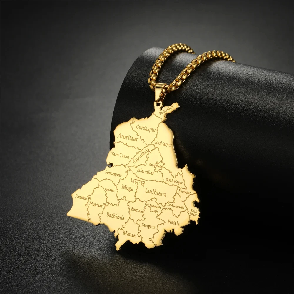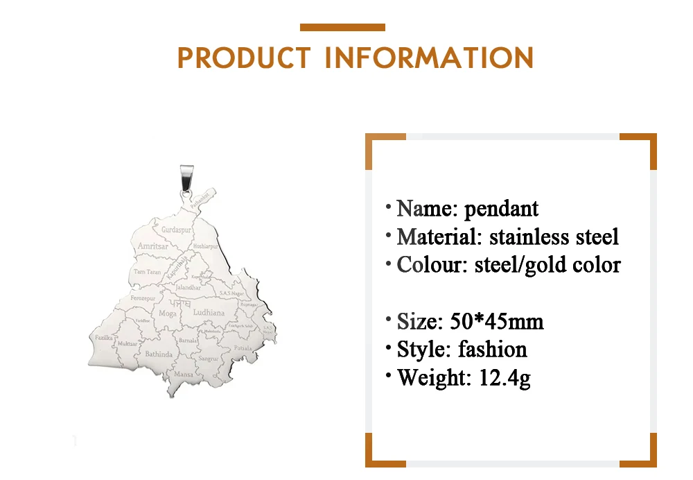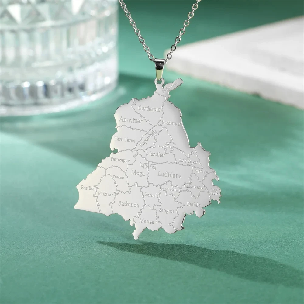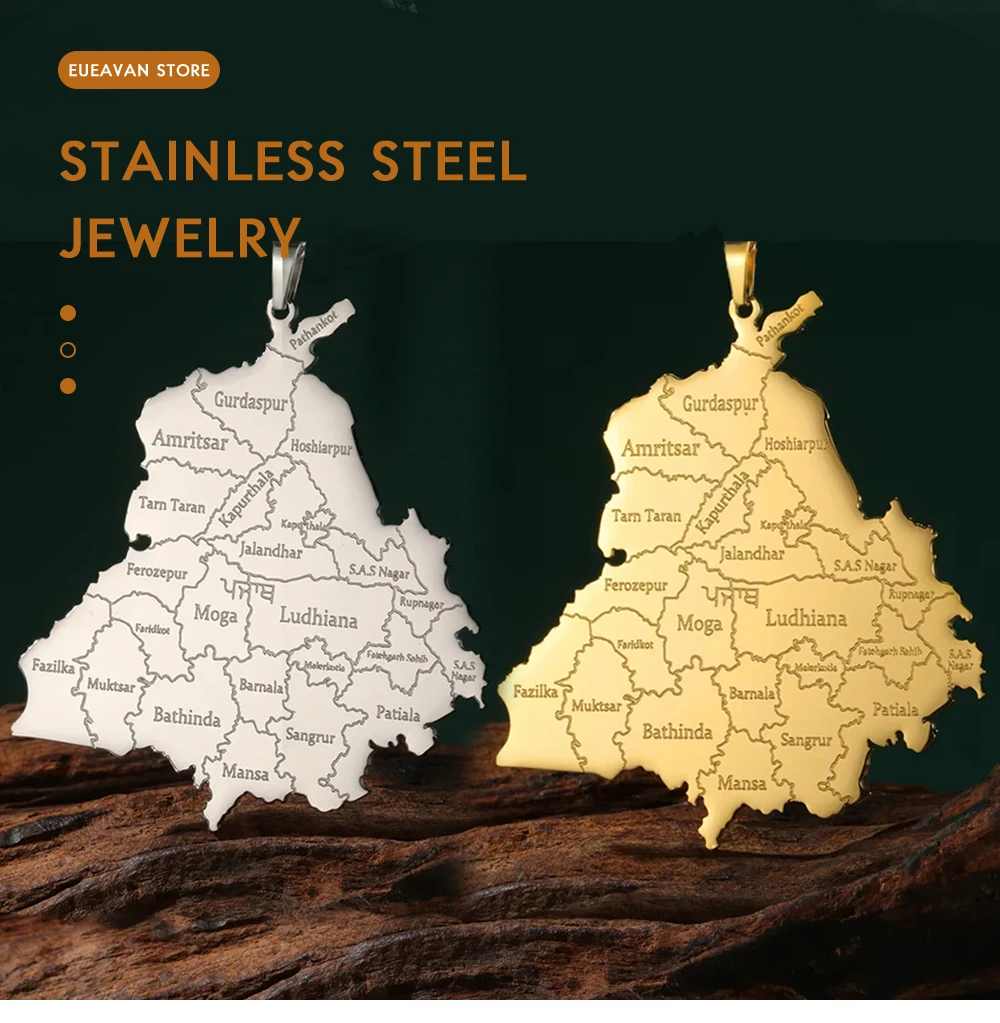 EUEAVAN 1pc India State Punjab Map Pendant Patriotic Ethnic Stainless Steel Charms DIY Necklace Keychain Jewelry Making Supplies